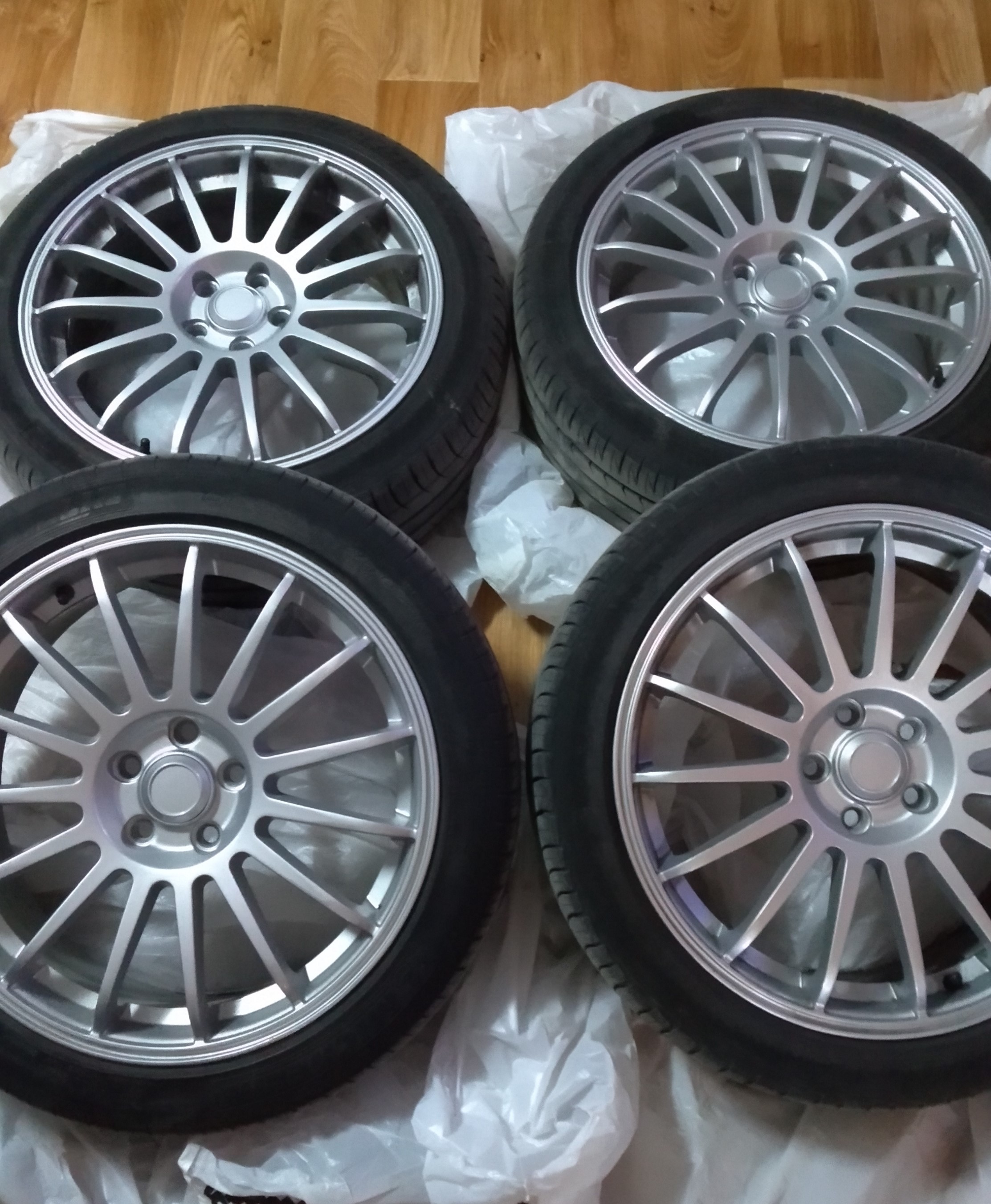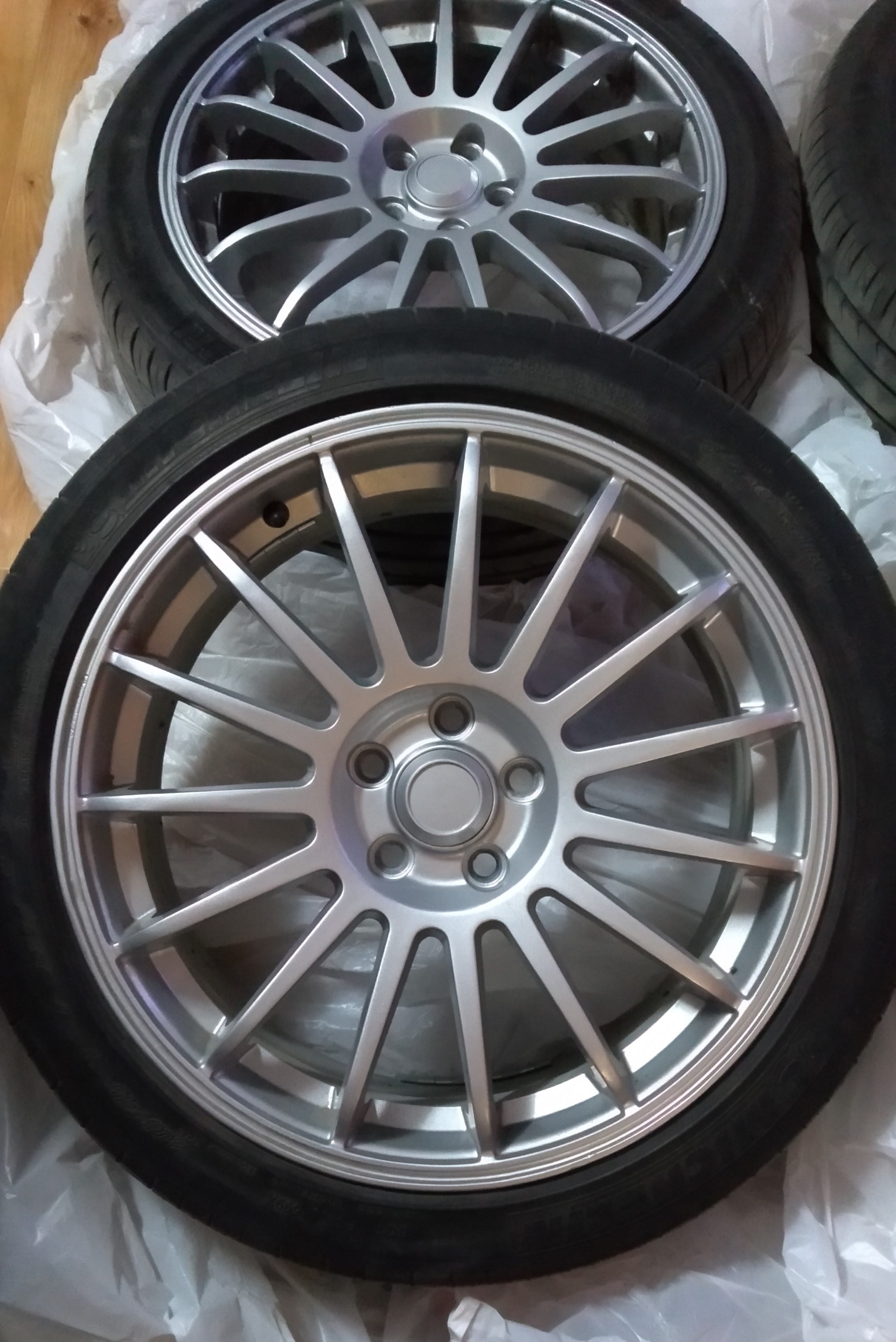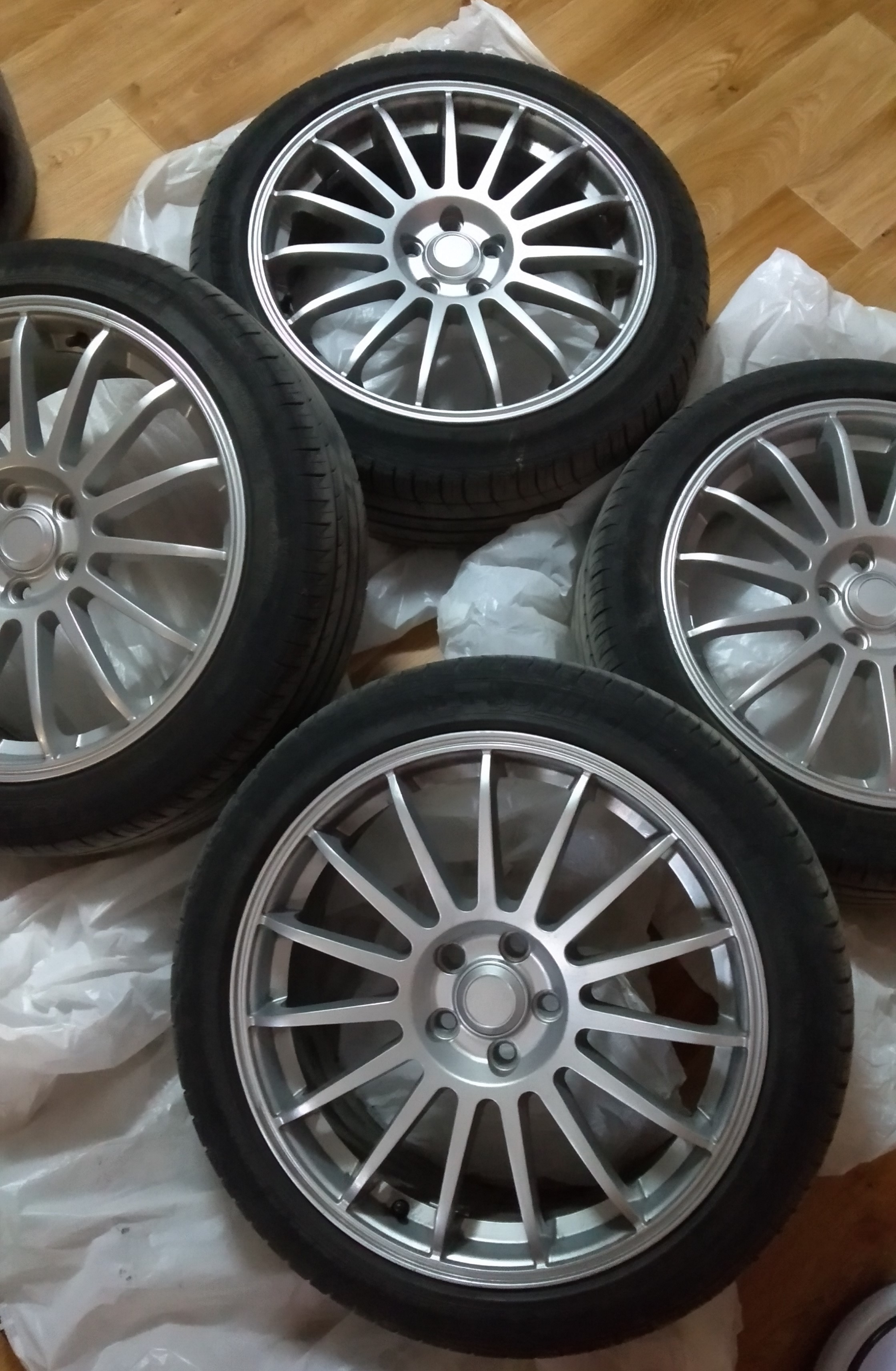 Полный комплект колёс R17. Диски Alcasta M31 R17 7J 5/100 с летней резиной Michelin Pilot Sport 205/45. Резина в нормальном состоянии, на одном колесе есть шишка, на ней отремонтированный порез. Резина держит давление без проблем. Есть комплект алюминиевых проставок (см. фото) и удлинённых болтов. Колеса стояли на автомобиле Skoda, подойдут на VW без проблем. Продаю за ненадобностью, стоят без дела, потому что очень часто езжу по дачам и прочим зеленям и такие колёса мне просто ни к чему. Проехал на них 1500+ км и переставил машину на родные R15. В ценах не очень ориентируюсь, поставлю за весь комплект 16 000, но готов к предложениям. Забирать в Краснооктябрьском районе.
