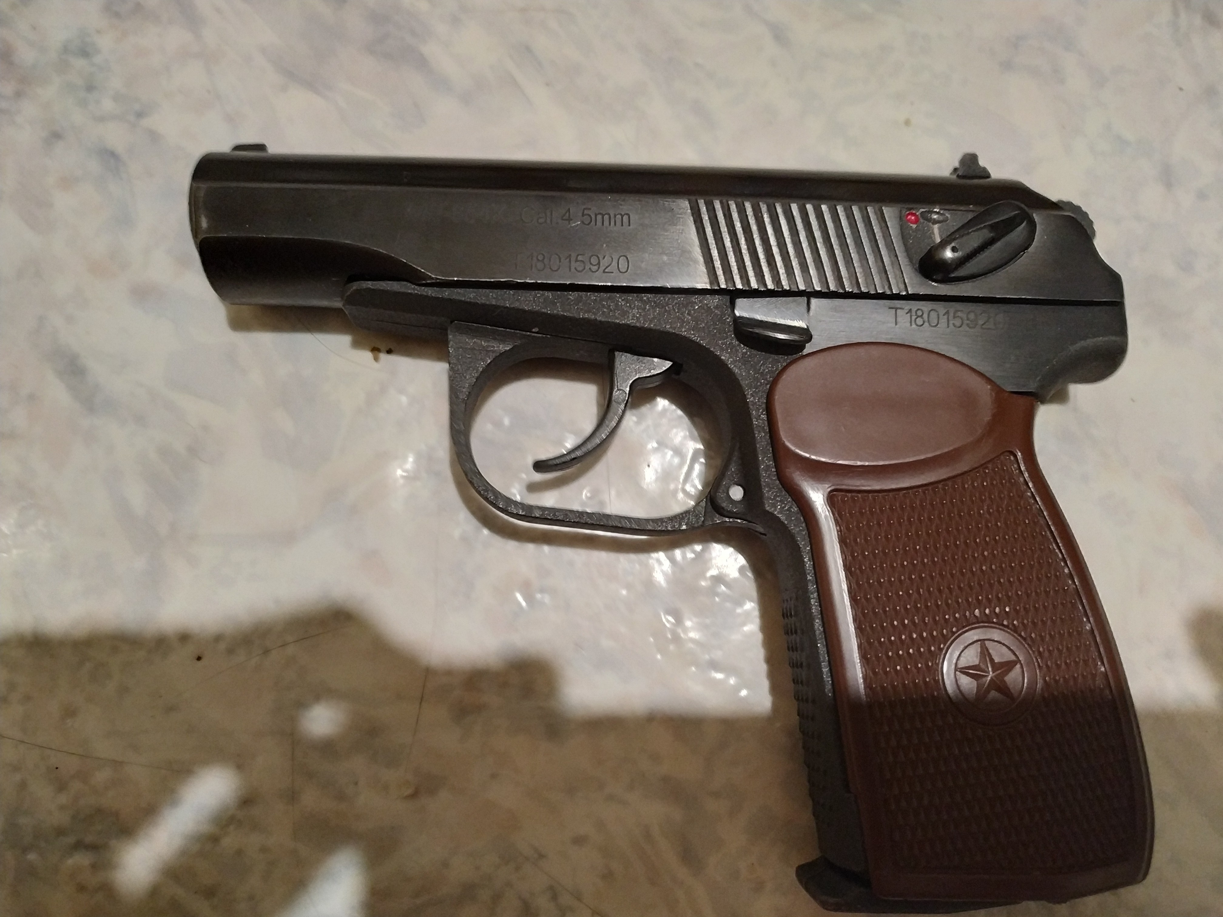 Раньше на рукояти пневматики, звезды как на настоящем ПМ небыло.