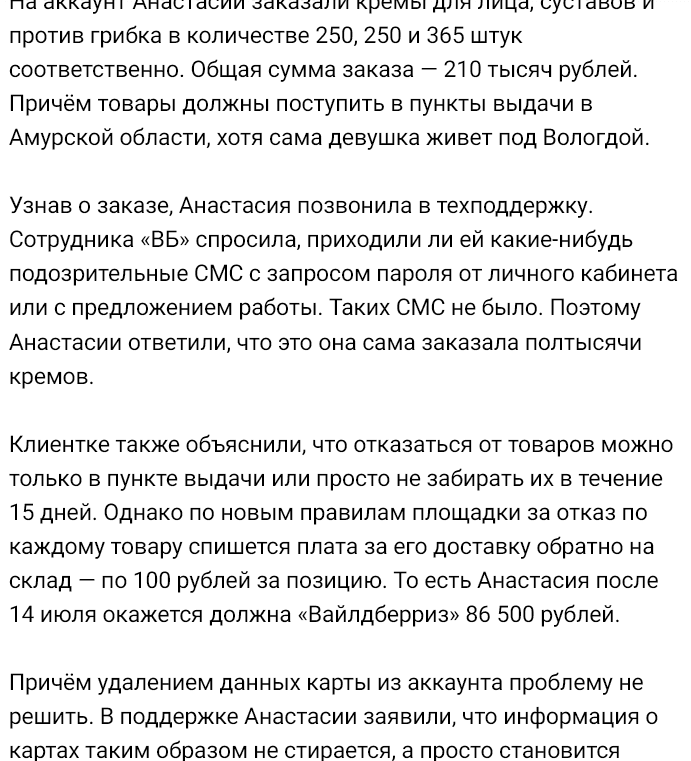 @olegun, не, скрин не хочу. На сайте в браузере. С моей стороны было много писанины по товару, по срокам, по упаковке, а с его или тишина или односложные ответы. Всего их было два - пришлите фото и пришлите номер карты. Я потянула время 10 дней, потом спрашиваю вы не передумали? В ответ «пришлите пожалуйста номер карты». Я говорю вы живой человек? В ответ опять пришлите пожалуйста номер карты. Итого от бота 5 сообщений: - В СПб пересылаете? - пришлите фото - пришлите карту - пришлите карту - пришлите карту