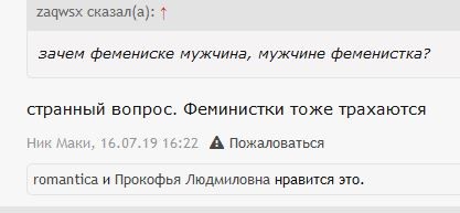Сам то я за равноправие полов, там где это разумно и опрпвдано...