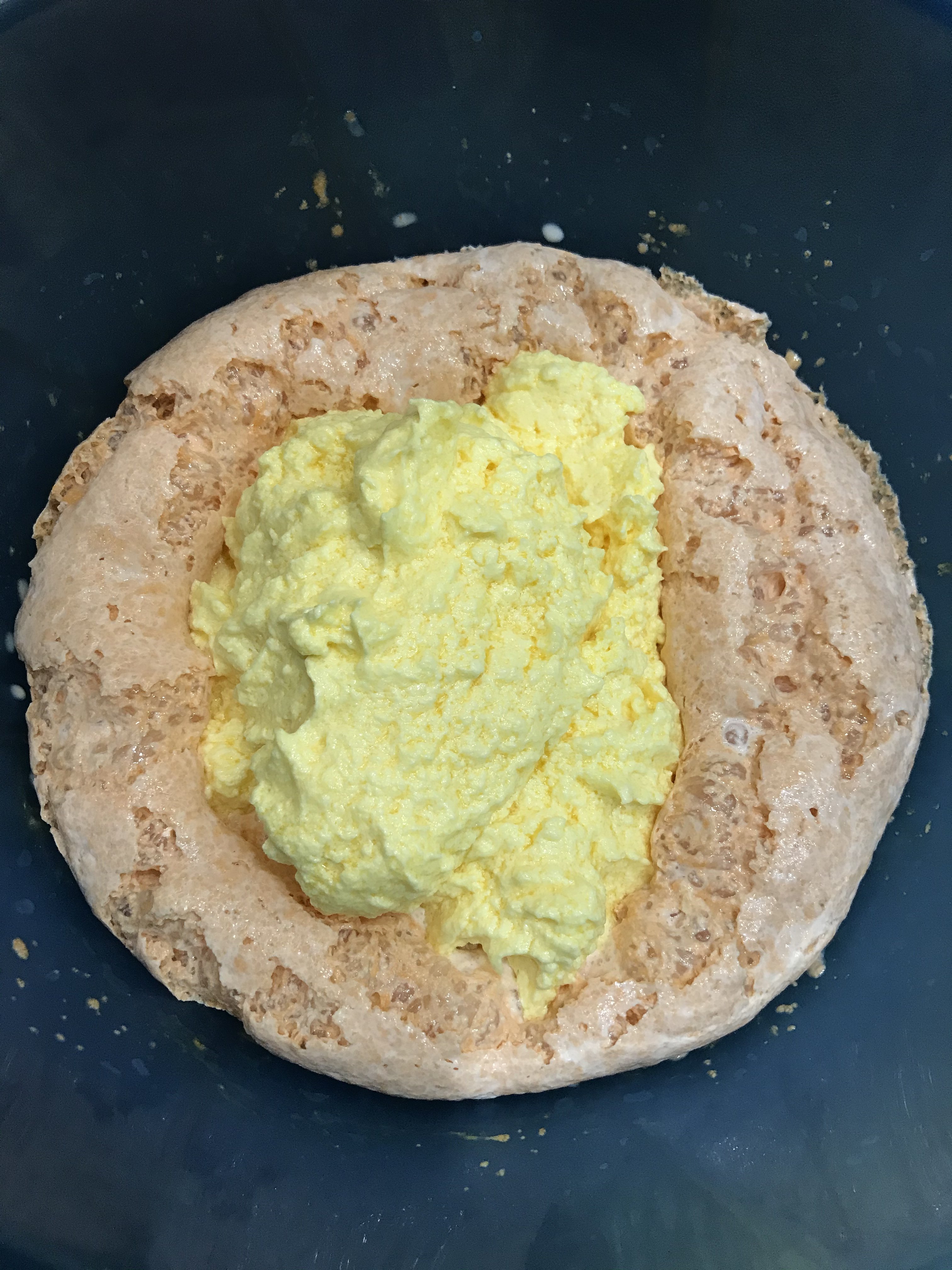 @Маришка, я помню выпечку с вареньем. Использовали вишневое. Тесто, помню, было такое синее. ))) Кекс вот : я взяла 0,7 порции для своей формы.