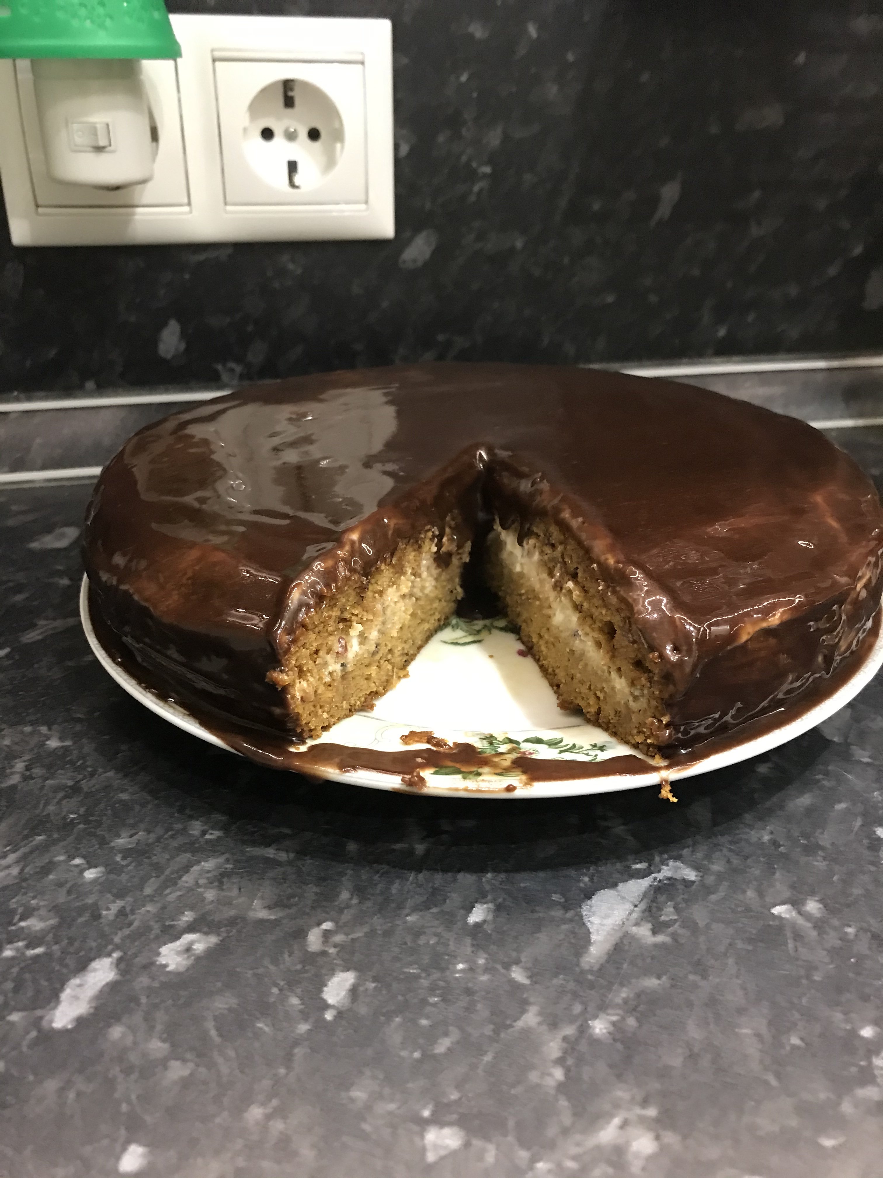 Торт/пирог, под названием Чёрный/Трухлявый пень. Наткнулась тут на тему и решила сделать, ориентировалась на этот рецепт Ретро-рецепт, может кто помнит из советского прошлого, выпечка из варенья. Гуглить историю не стала, потом) Спросила у своей мамы, она такой не делала и я помню что не было у нас такого в детстве. Варенье у меня было малина с красной смородиной (2в1) - 1 стакан. Добавила к нему 1,5 ч.л. соды, перемешала и оставила на 1ч., или чуть больше вышло. Добавила 0,5 стакана сахара, 1 стакан сметаны, 2 стакана муки через сито. Миксером перемешала. Форму смазала маслом, вылила в неё тесто и отправила в предварительно разогретую духовку до 180С. Готовность смотрела по внешнему виду и проколу зубочисткой. Достала, разрезала пополам. На нижнюю часть нанесла крема больше, верхнюю пропитала изнутри и ещё оставила крем обмазать верх торта. Крем: творожный сыр Almette сливочный, несколько ложек сметаны, сахарная пудра по вкусу. Глазурь: 2 ст.л. сахара, 2ст.л. какао, 2 ст.л. сметаны перемешать и на огне довести до однородной массы, добавить ~30 гр. сливочного масла, перемешать до его растворная. Покрыть торт. Сил, ждать пока лучше пропитается и застынет глазурь, не было и я отрезала кусок сразу) Ел муж, я попробовала кусочек. Он вкусный! @Бета, ух тыж красота какая! Дай точную ссылку)