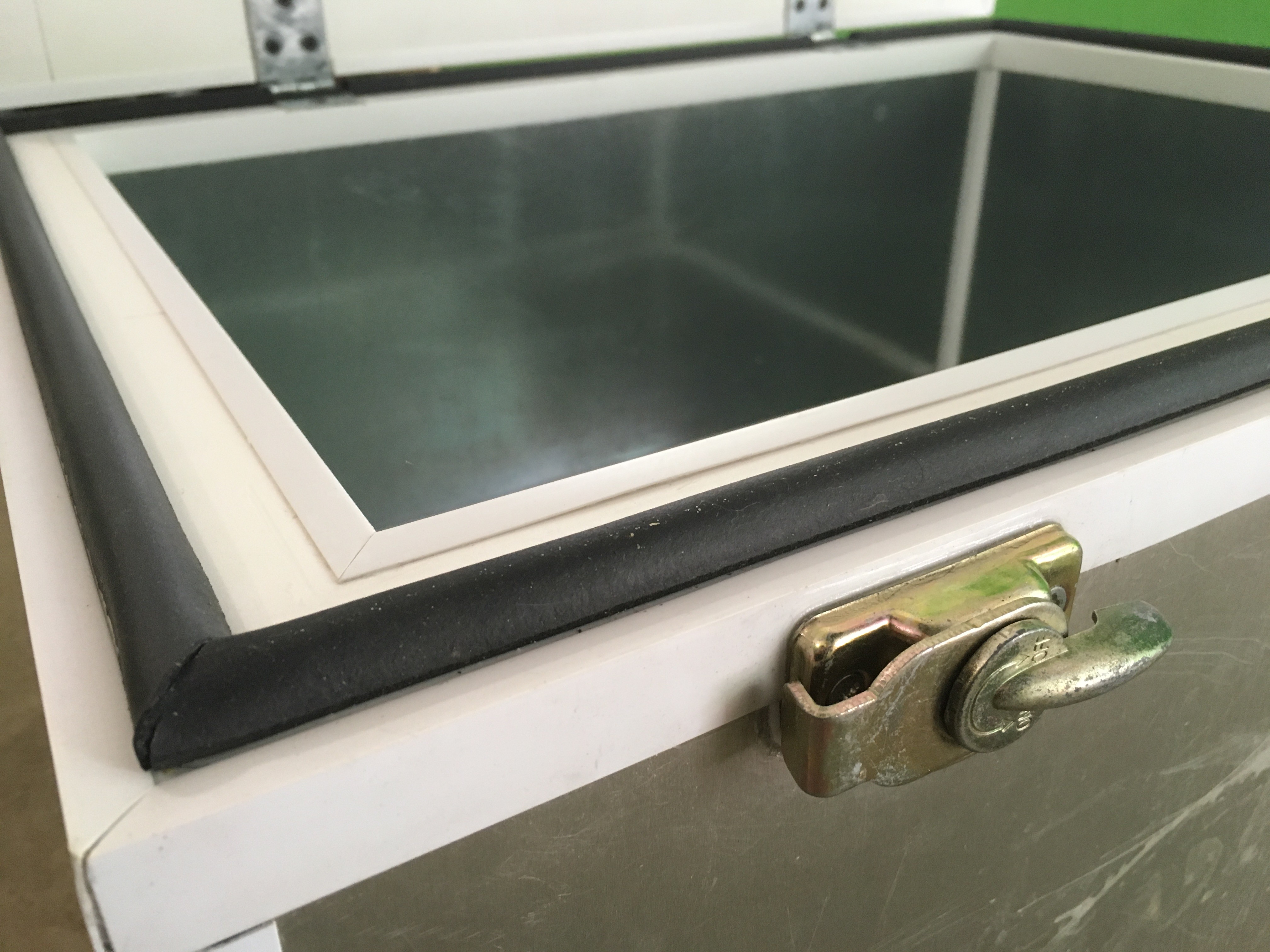 Очень вместительный: 65 литров. Толщина стенок (пеноплекс) 55 мм, уплотнители между крышкой и контейнером.