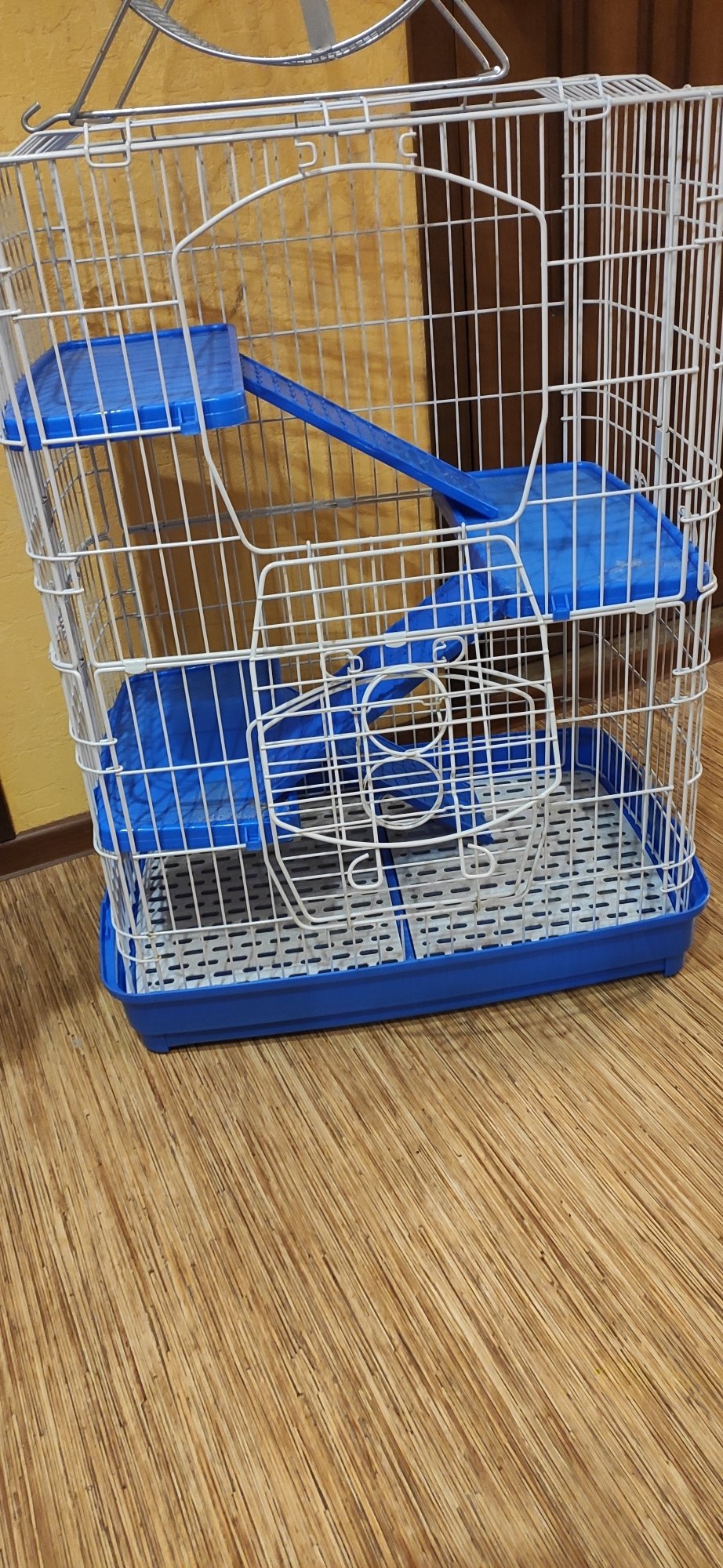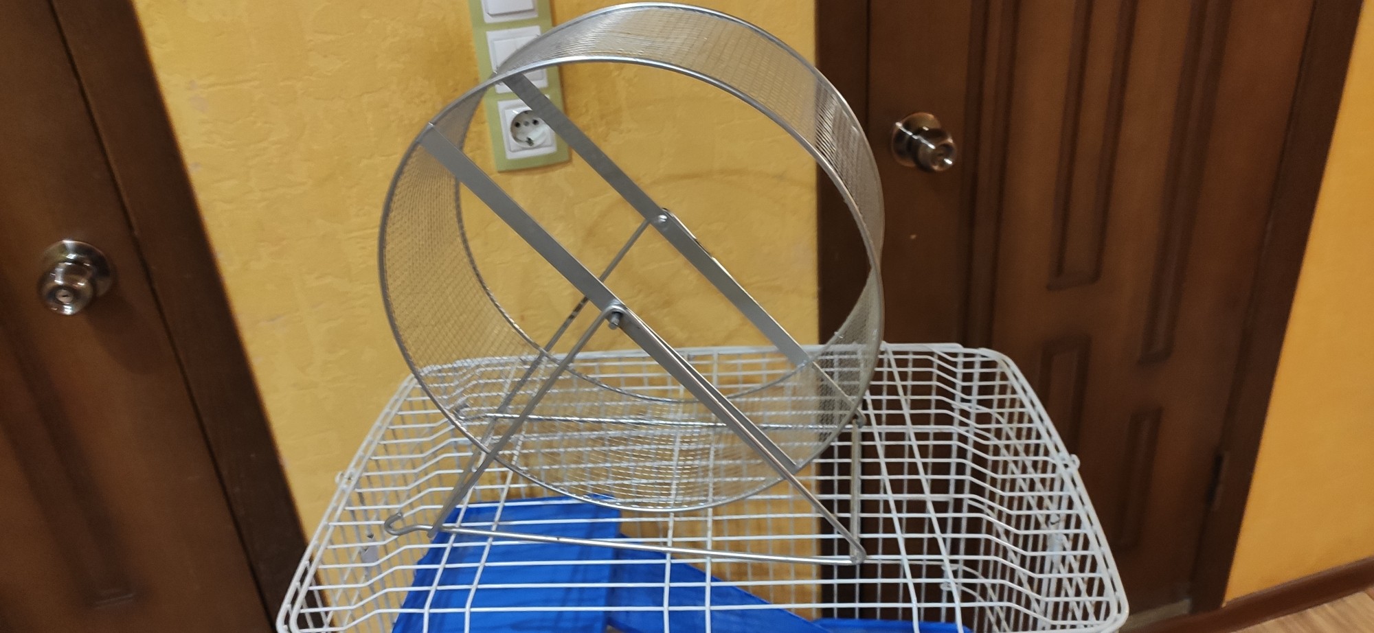 Купил с рук, но нам оказалась крупновата и поэтому решили сделать сами. Такая клетка стоит в "4 лапы" более 10 тыс рублей. Я отдаю за 2999 рублей и колесо в подарок.