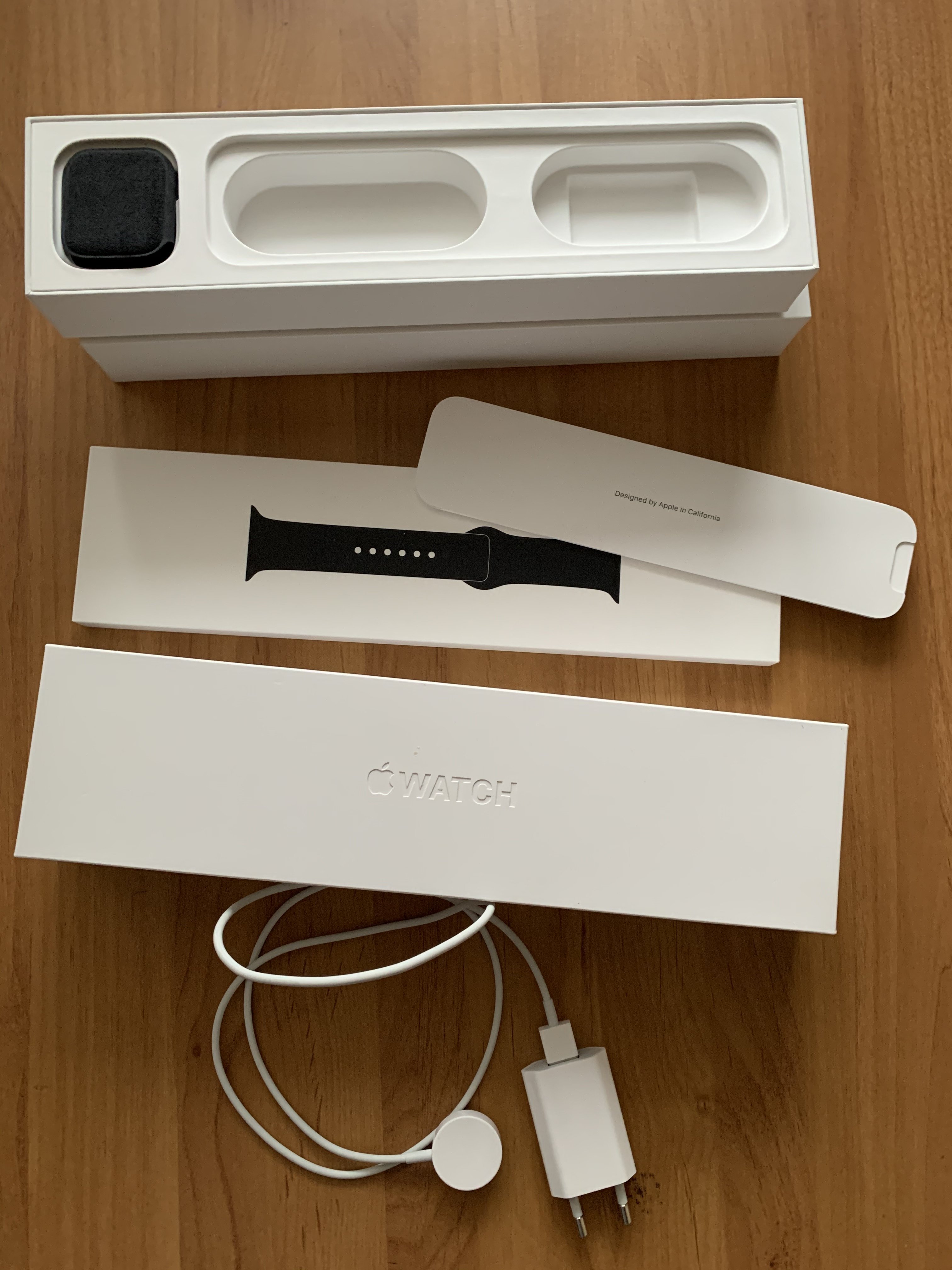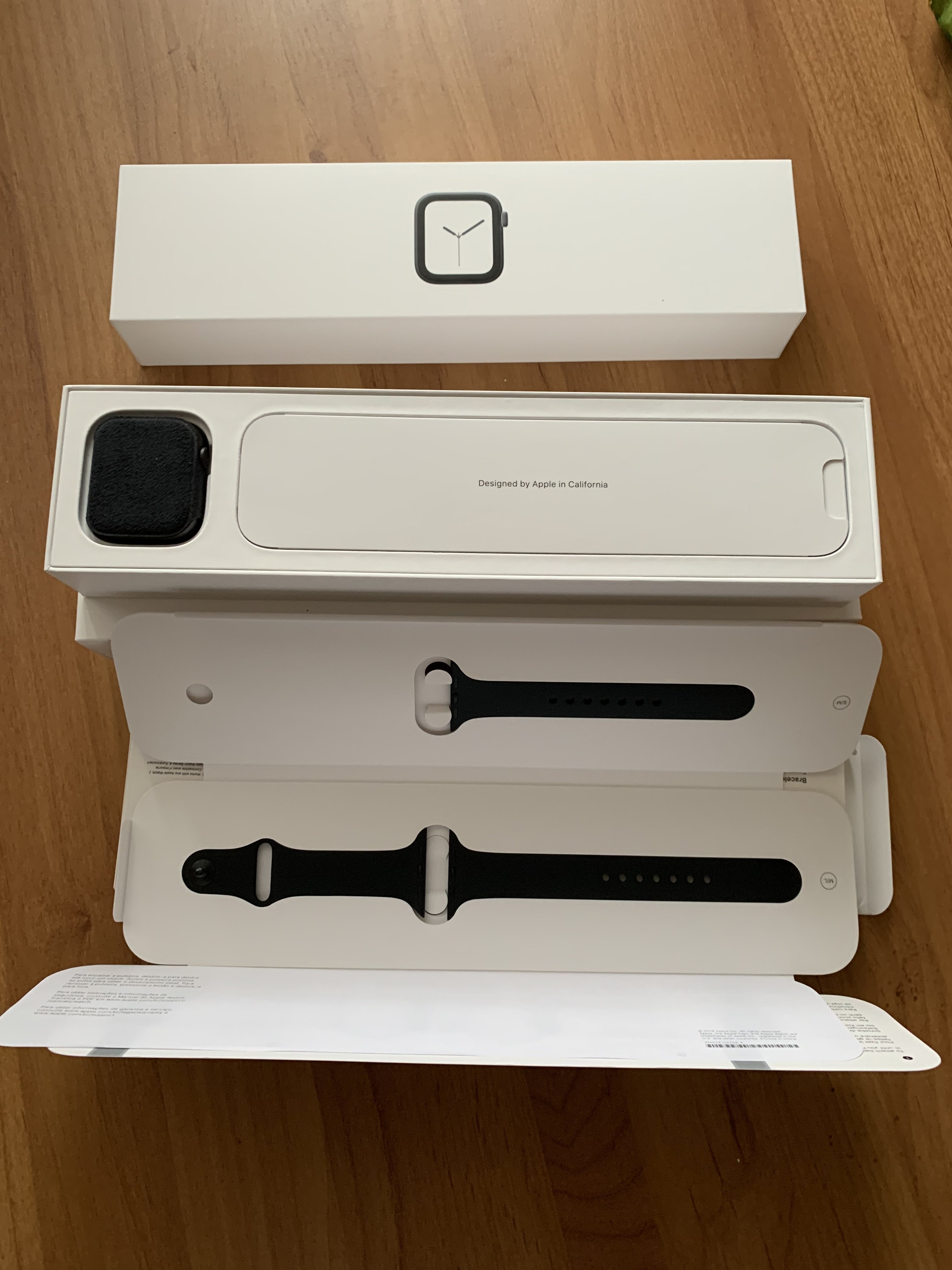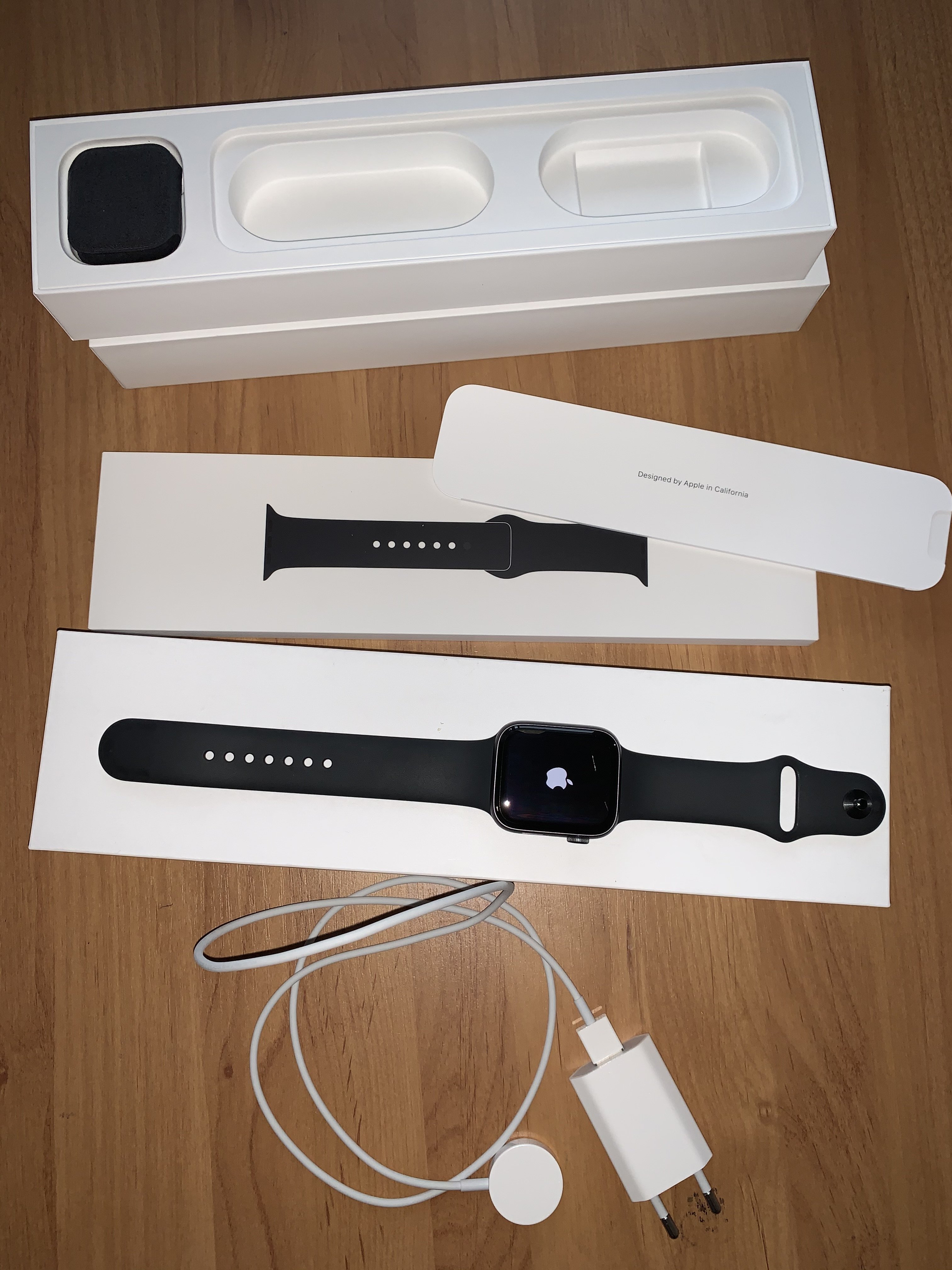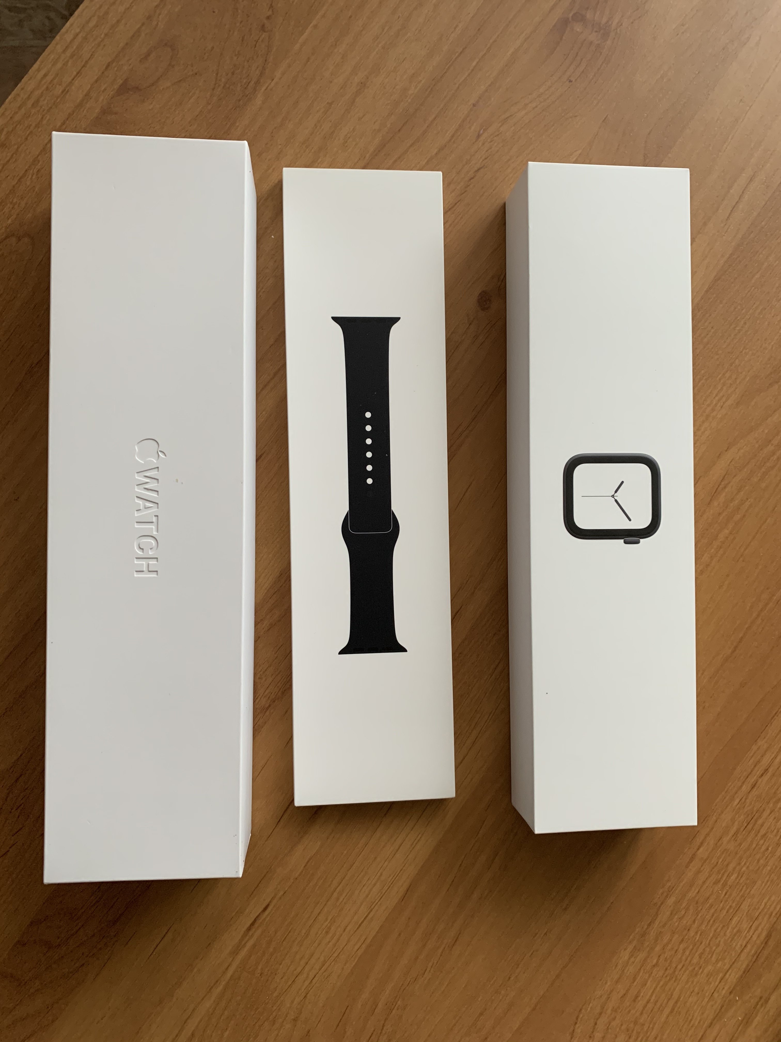 Продаю Apple Watch 4 44 мм, алюминиевые, space gray. Состояние на 4+. Есть две небольшие царапины на экране. Видно на фото. В мае делалась коммерческая замена часов. Полный комплект. Ремешок, кабель, блок питания. Часы сброшены из iCloud удалены.