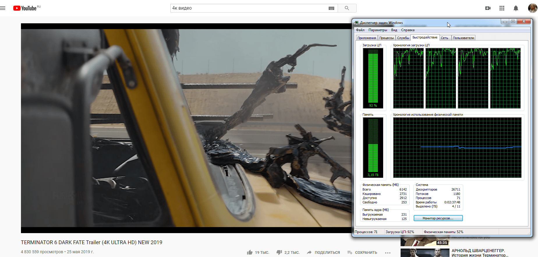 Немного офтопа по ютубу. На компе не смотрю дома. А тут понадобилось. Включаю, а он ТОРМОЗИТ безбожно, каждры сотнями пропускает. ПРичем, вне зависимости от разрешения. Собственно, железо тоже, явно не причем (12 ядер, 24 потока, 32Гб, GTX 1080). Видимо, что-то софтовое, но что? Как найти виновника? Че гоняешь?