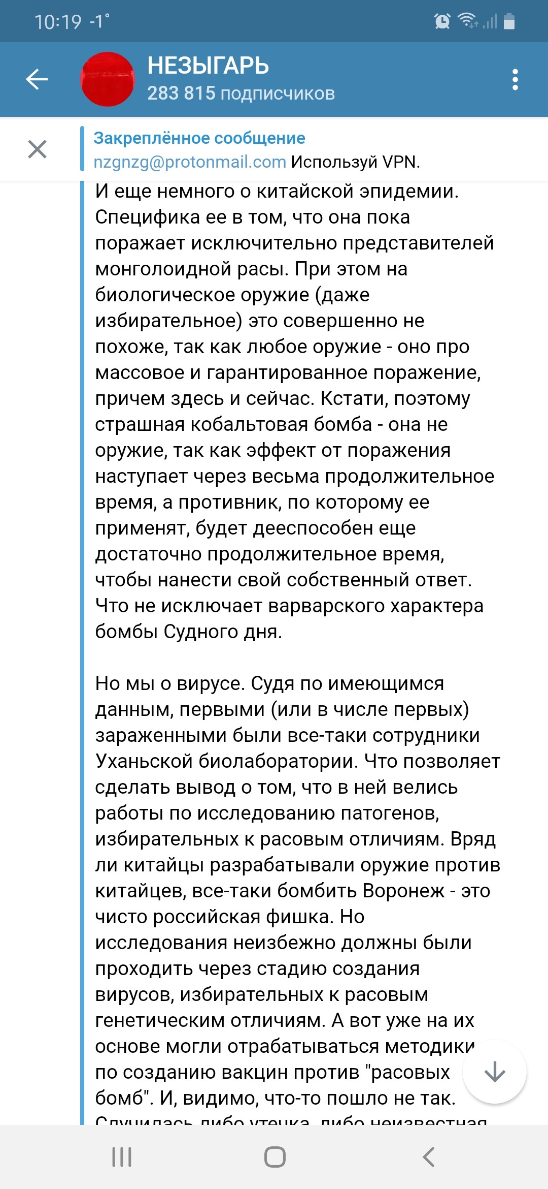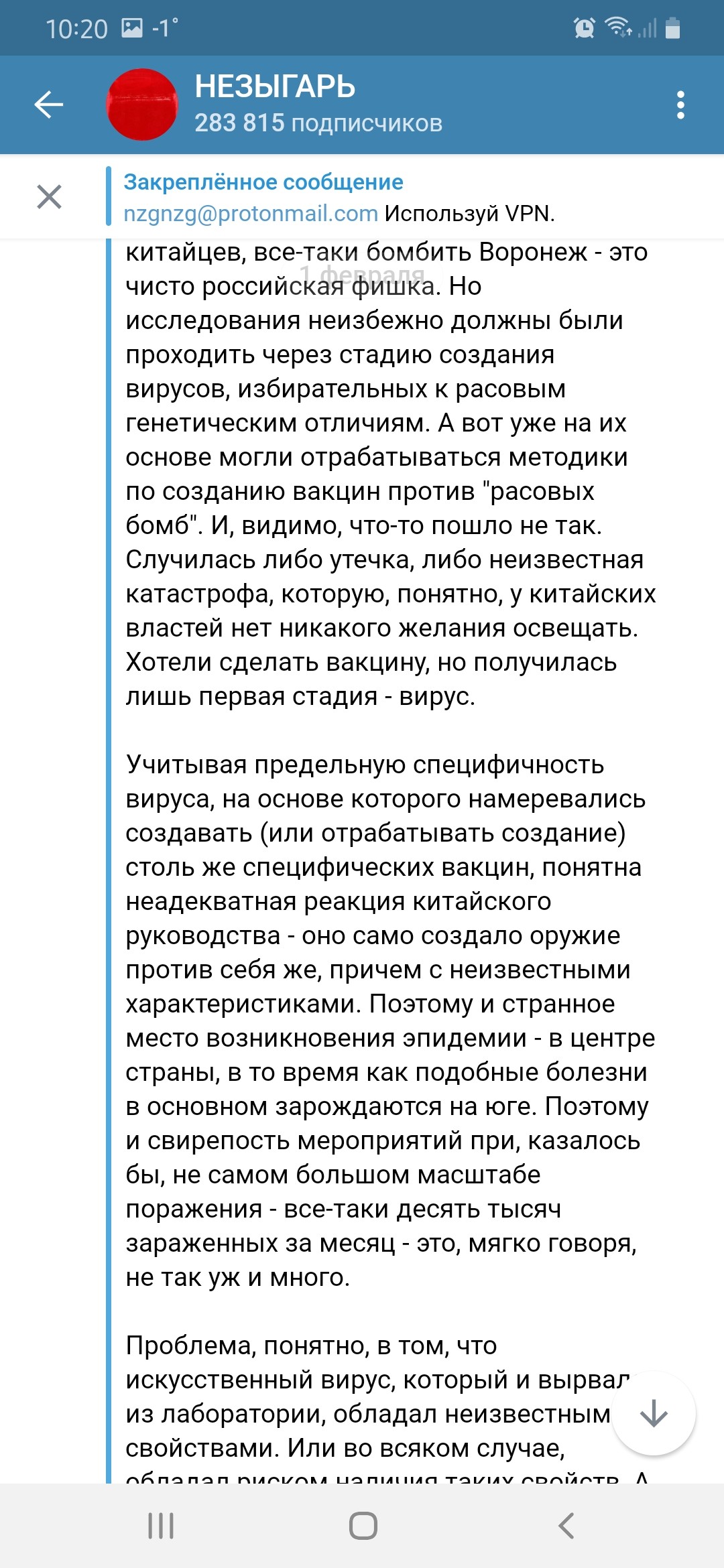 @vsm, не факт. @fb03, теория про рассовоориентированный вирус конечно красивая, на то она и теория. Но то что в Ухане расположена эта лаборатория, сие есть факт. Не слишком ли странное стечение обстоятельств? Ясен пень Си будет замалчивать, что его ученые-моченые открыли ящик пандоры.