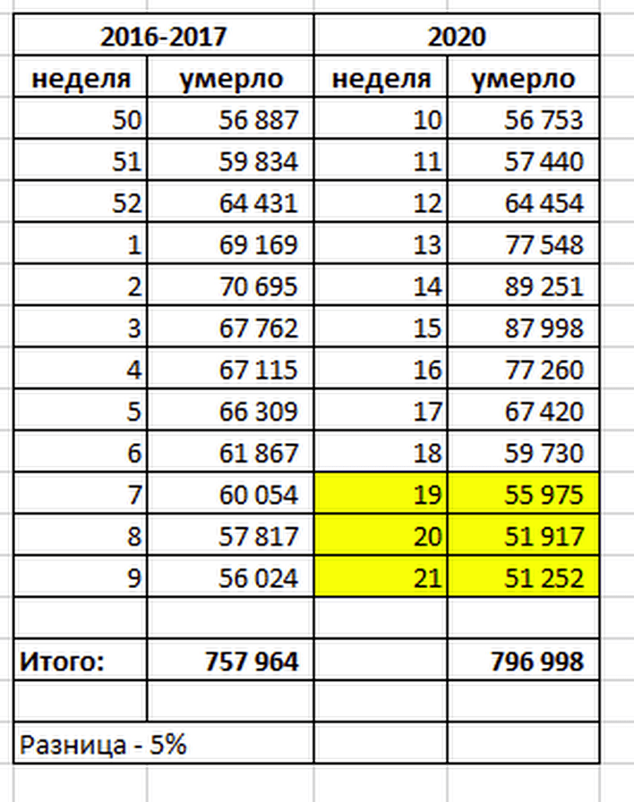 Лень искать цепочку срача насчет статистики, так что без привязки к предыдущим сообщениям: Очевидно, что даже без учета "желтой" зоны, количество смертей резко падает Для интереса, сравнил абсолютные цифры: 758 тысяч в начале 2017 года и 797 тысяч сейчас. разница около 5%