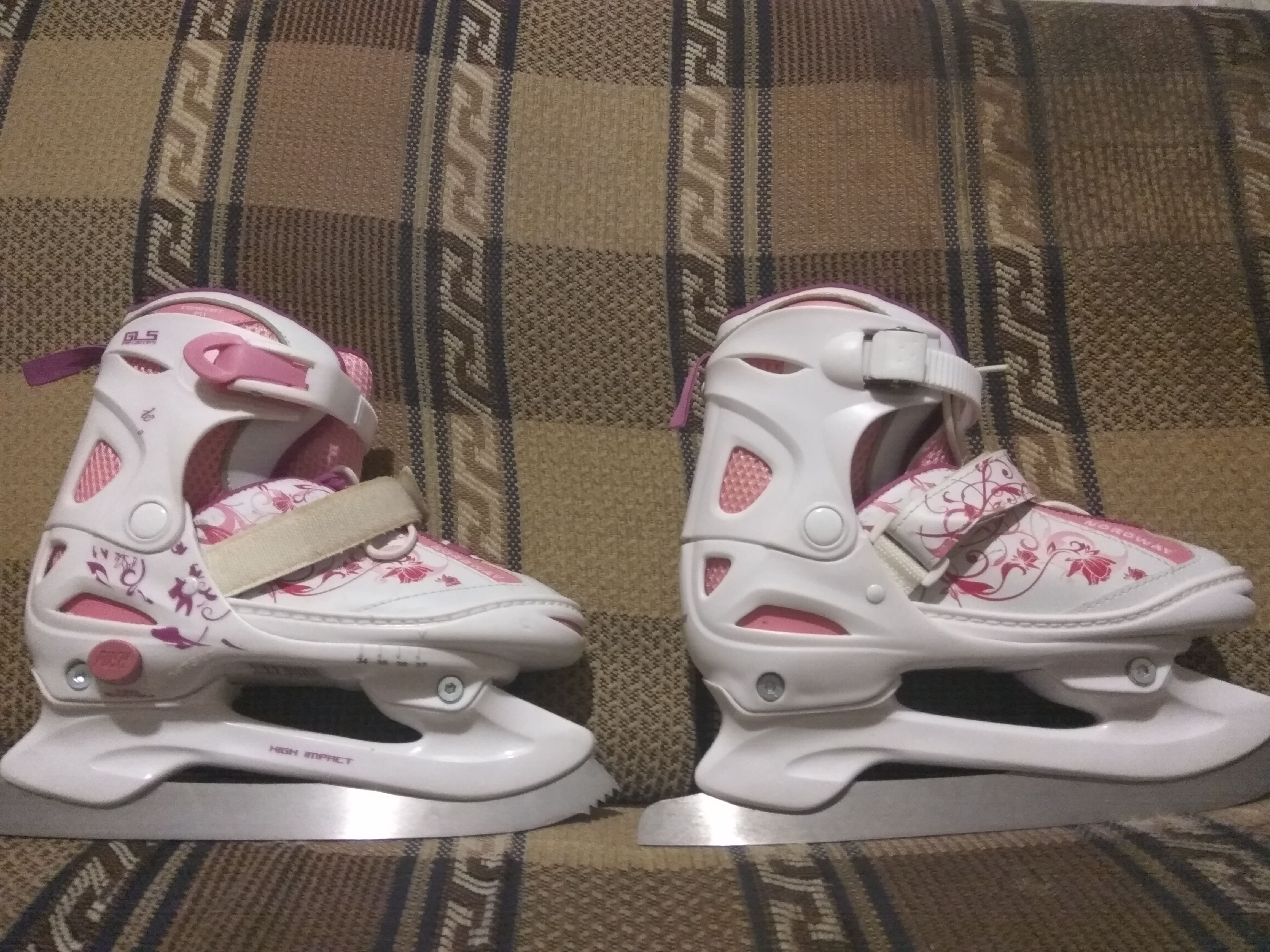 Коньки детские женские переменного размера 34-37. В отличном состоянии, пользовались один сезон. Шнуровка+липучка. Зубья в передней части. наименование NORDWAY SLDG-WP-34. Цена 1000 рублей.