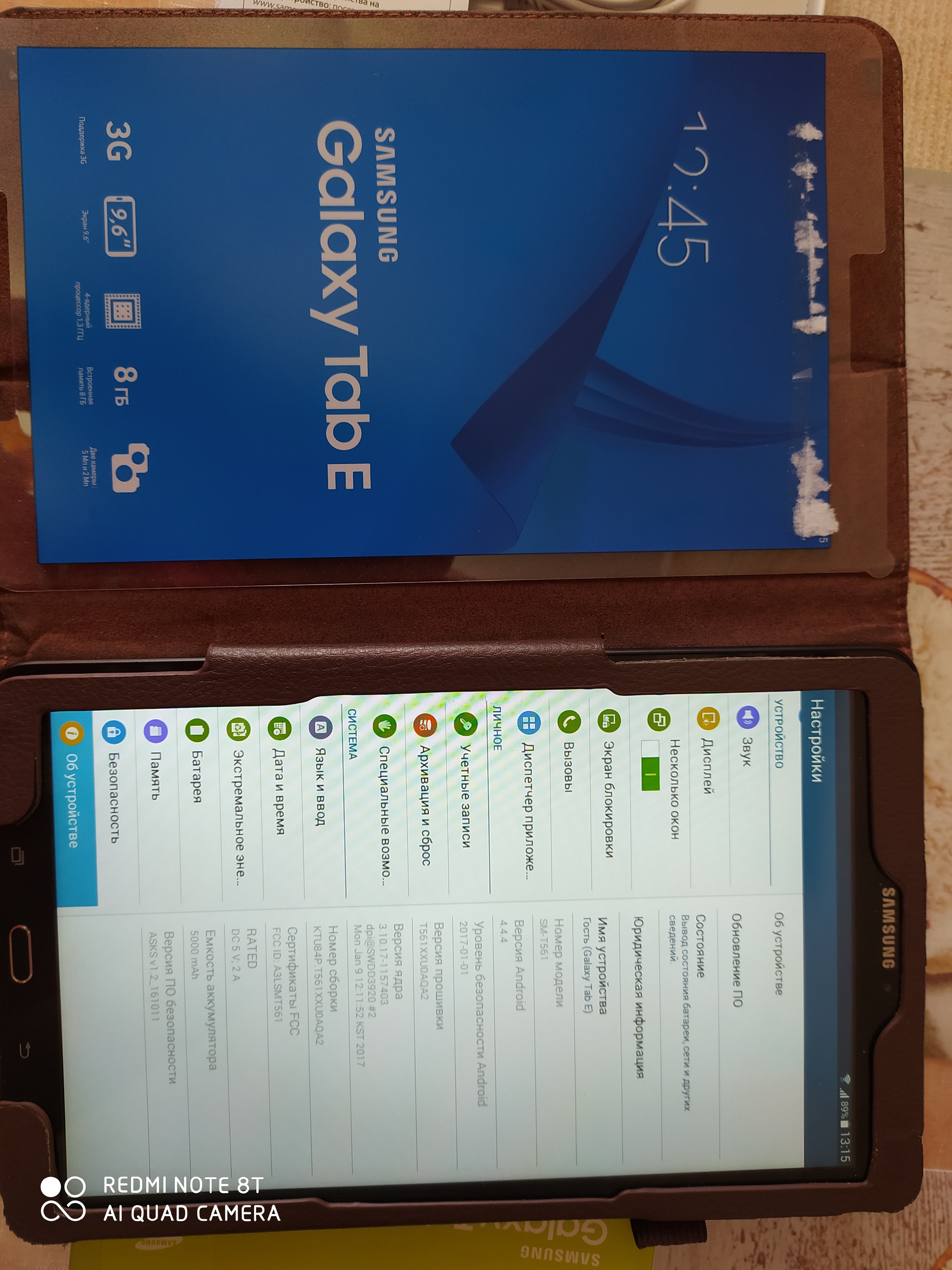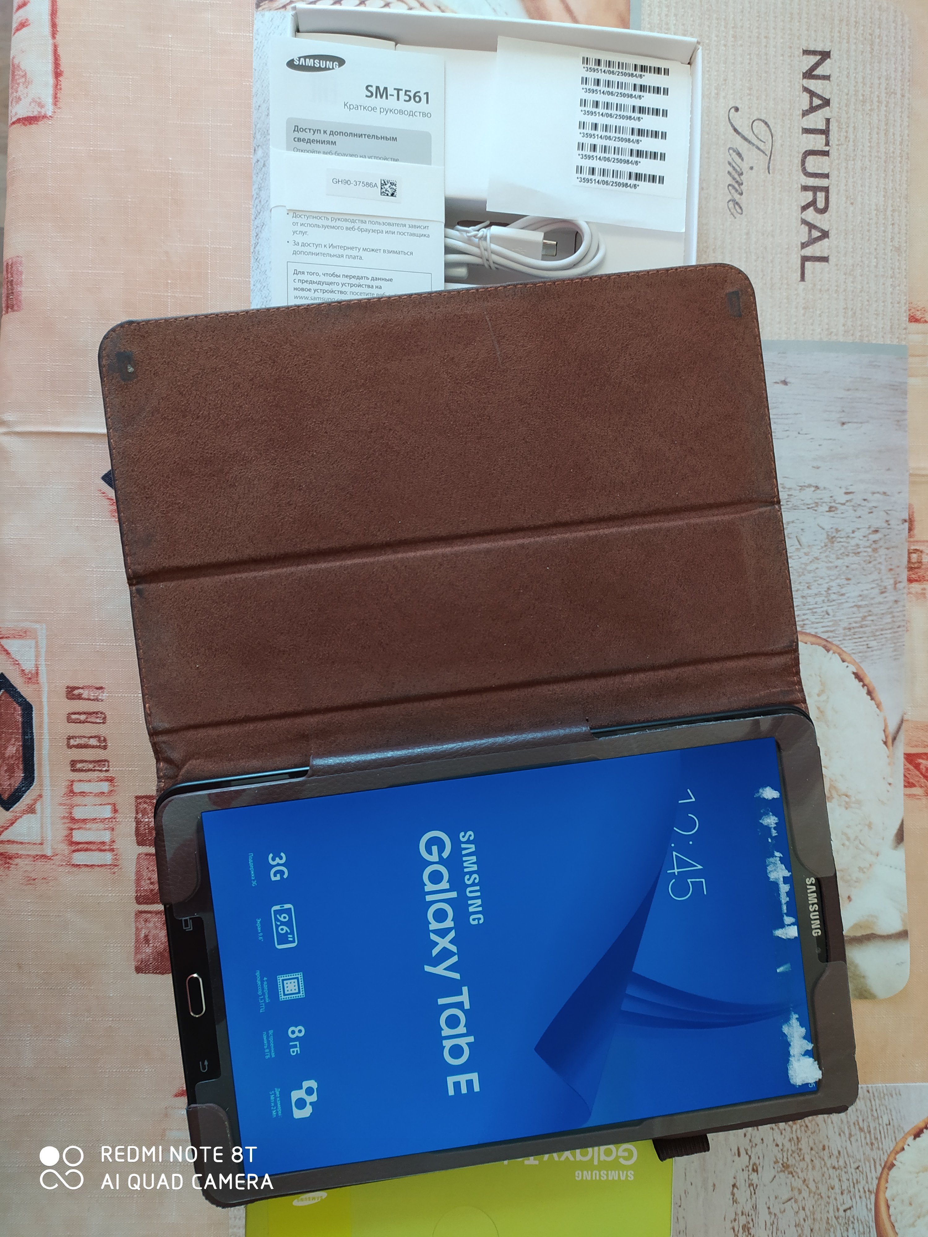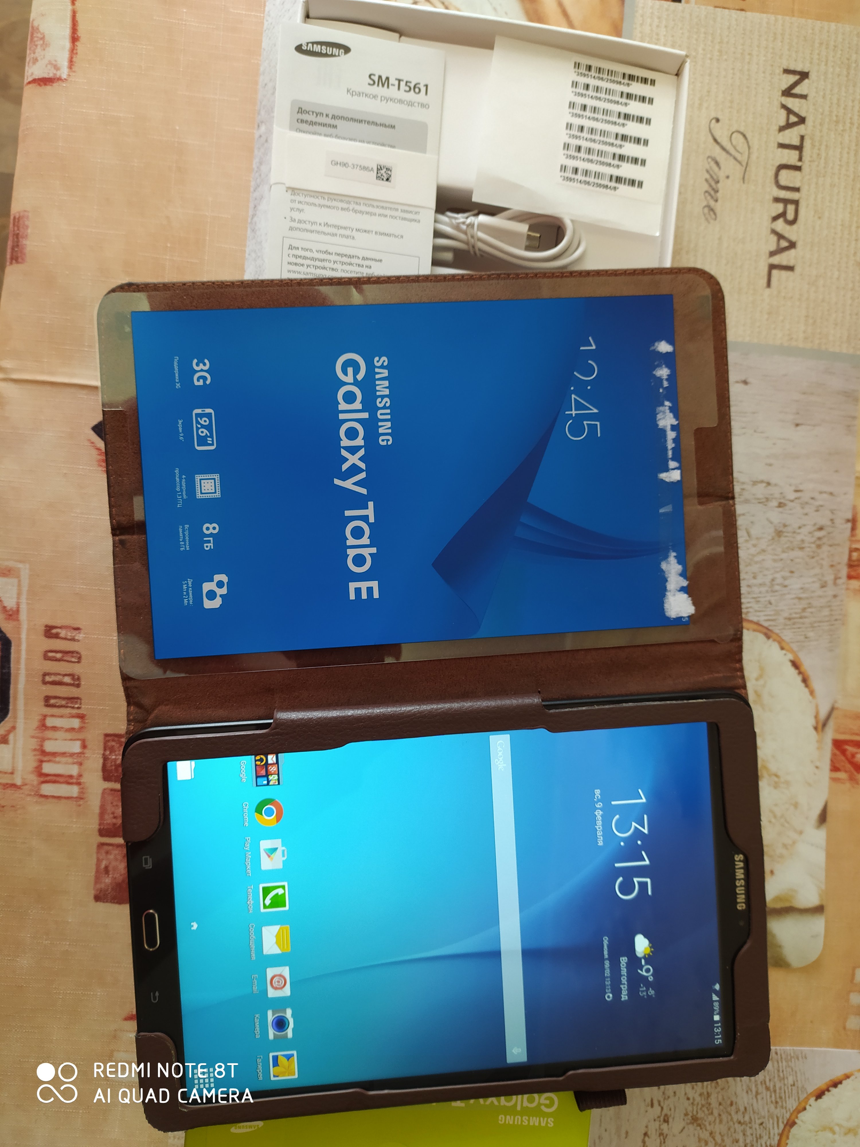 В отличном состоянии в кожаном чехольчике,полный комплект включая коробку и бумажки к нему+бонусом карта памяти 8 Гб Sony 10 Class... Серия модели Серия Galaxy Tab E 9.6 (SM-T561) Операционная система Операционная система Android4.4 Процессор Производитель процессора Spreadtrum Тип процессора SC7730SE Частота процессора? 1.3 ГГц Количество ядер? 4 Оперативная память Оперативная память (RAM)? 1.5 ГБ Встроенная память Встроенная память (ROM)? 8 ГБ Экран Диагональ/разрешение 9.6"/1280x800 пикс. Диагональ экрана 9.6"(24.3 см) Дисплей Технология дисплея TFT? Сенсорный дисплей Да Микрофон Встроенный микрофон 1 Фотокамера Разрешение фотокамеры 5 МПикс Разрешение фронтальной камеры 2 МПикс Матрица Качество видеосъемки 1280x720 Пикс (HD) Функции Поддержка Wi-Fi IEEE 802.11 a/b/g/n Wi-Fi точка доступа Да Технология Wi-Fi Direct Да Поддержка GPS? Да Поддержка USB Host (OTG) Да Стандарты связи Поддержка сетей 3G? Bluetooth Встроенный модуль Bluetooth 4.0? SIM карта Количество SIM карт 1 Тип SIM карты micro-SIM Карта памяти Тип карты памяти microSD, microSDHC, microSDXC Макс. емкость карты памяти 128 ГБ Электропитание Работа от аккумулятора до 10 часов Время в режиме разговора? до 10 часов Емкость аккумулятора 5000 мАч Интерфейсы Порт microUSB 2.0 1 Разъемы Разъем 3.5 мм для подкл. гарнитуры 1 Корпус Материал корпуса пластик? Комплектация Кабель для связи с ПК в комплекте Зарядное устройство в комплекте Да Цвет Цвет черный Габаритные размеры Габаритные размеры (В*Ш*Г) 242*150*9 мм Высота 242 мм Ширина 150 мм Глубина 9 мм Вес Вес 495 г Заводские данные Гарантия 1 год Страна Вьетнам Хотелось бы получить 7 тысяч деревянных рублей.
