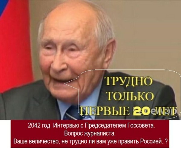 Вообщем то, и 20 лет мало для руководителя нашей большой страны. Хотелось бы надеяться что он реально руководит, но в истории такого ещё не случалось. Будем посмотреть чья возьмёт.