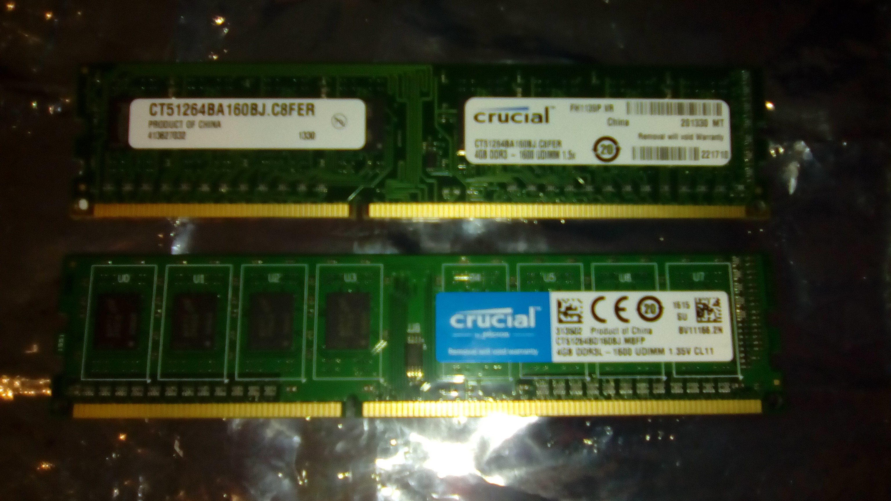 @Atom75, устраивает. Модели планок: CT51264BA160BJ.C8FER Купить Модуль памяти CRUCIAL CT51264BA160BJ DDR3 - 4Гб в интернет-магазине СИТИЛИНК, цена на Модуль памяти CRUCIAL CT51264BA160BJ DDR3 - 4Гб (771601) - Волгоград CT51264BD160BJ.M8FP Купить Модуль памяти CRUCIAL CT51264BD160BJ DDR3L - 4Гб в интернет-магазине СИТИЛИНК, цена на Модуль памяти CRUCIAL CT51264BD160BJ DDR3L - 4Гб (738314) - Волгоград