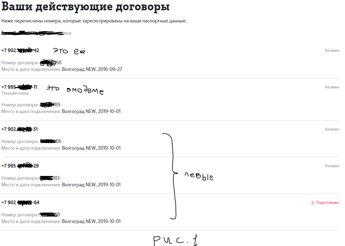Первого октября прошлого года с тётенькой одной подключали теле2 для использования в модеме. Остался чек, договор, сим-холдер, весь комплект. Подключали просто в салоне связи напротив жд-вокзала. продавщица сняла копию паспорта. Рылся недавно в личном кабинете - этой же датой на тётеньку зарегистрированы ещё три номера (естественно, про которые она не в курсе), см.рисунок 1 И одно дело - попользовались и выкинули, а другое - какой-нибудь террорюга попользовался, а потом вопросы к тому, на чьё имя куплена симка. Это первый факт незаконного использования персональных данных, ящитаю. Сегодня лазил у себя в личном кабинете МТС. У меня долгое время МТС был провайдером телека и дом.интернета, а тут повёлся, и 31 декабря перешёл на весь МТС, чтоб, значит, симку для планшета с безлимитом ещё дали. Оформлял в фирменном салоне на Невской. Тоже сняли ксерокопию паспорта. И 8 января, судя по всему, на мой паспорт ушлые продаваны также зарегистрировали симку (см. второй рисунок), этот номер мне незнаком. Это второй факт незаконного использования персональных данных, ящитаю. Вопросы: 1) как избавиться от этих номеров? 2) как нагнуть салоны связи (ибо, думаю, оператор не в курсе, что это не мы пользуемся всеми этими симками)