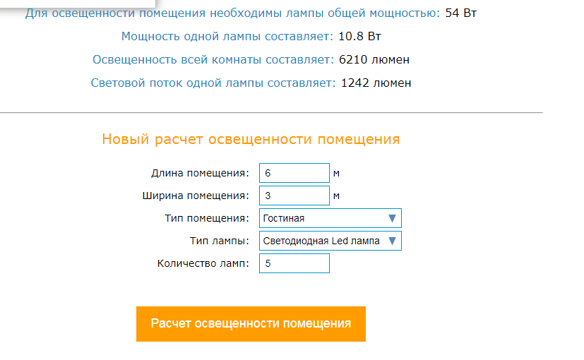 Дома, на комнату 16кв.м надо 5 ламп по 15 ватт общего освещения и ещё точечные светильники