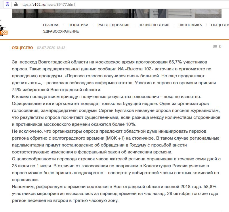 Переход Волгоградской области из 3 часовой зоны (МСК+1) во вторую часовую зону (МСК)