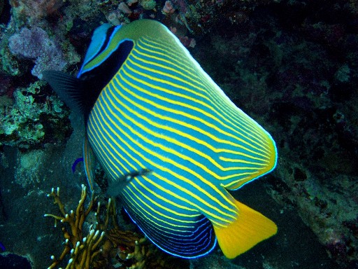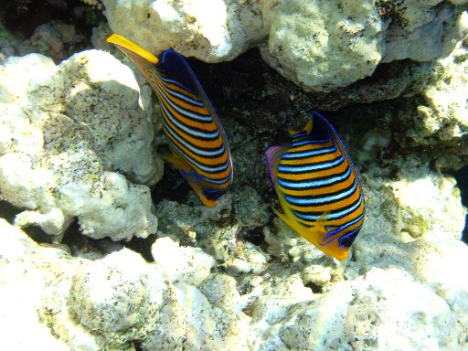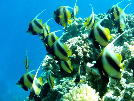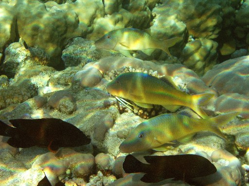 Эти рыбки всегда плавают стаями. И обычно даже не двигаются, а просто "висят" в воде на одном и том же месте. З.Ы. Обидно что фотик не передает точные цвета, они еще ярче и красивее! И не виден размер. Практически все рыбы размером более ладони, а многие значительно крупнее.