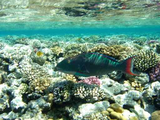 Все рыбы-попугаи очень красивые!!! Совершенно не боятся людей! Кормить хлебом их даже опасно, могут за пальцы покусать, так кидаются за едой! Размер начинается от 30 см. Есть на глубине просто гигантские!