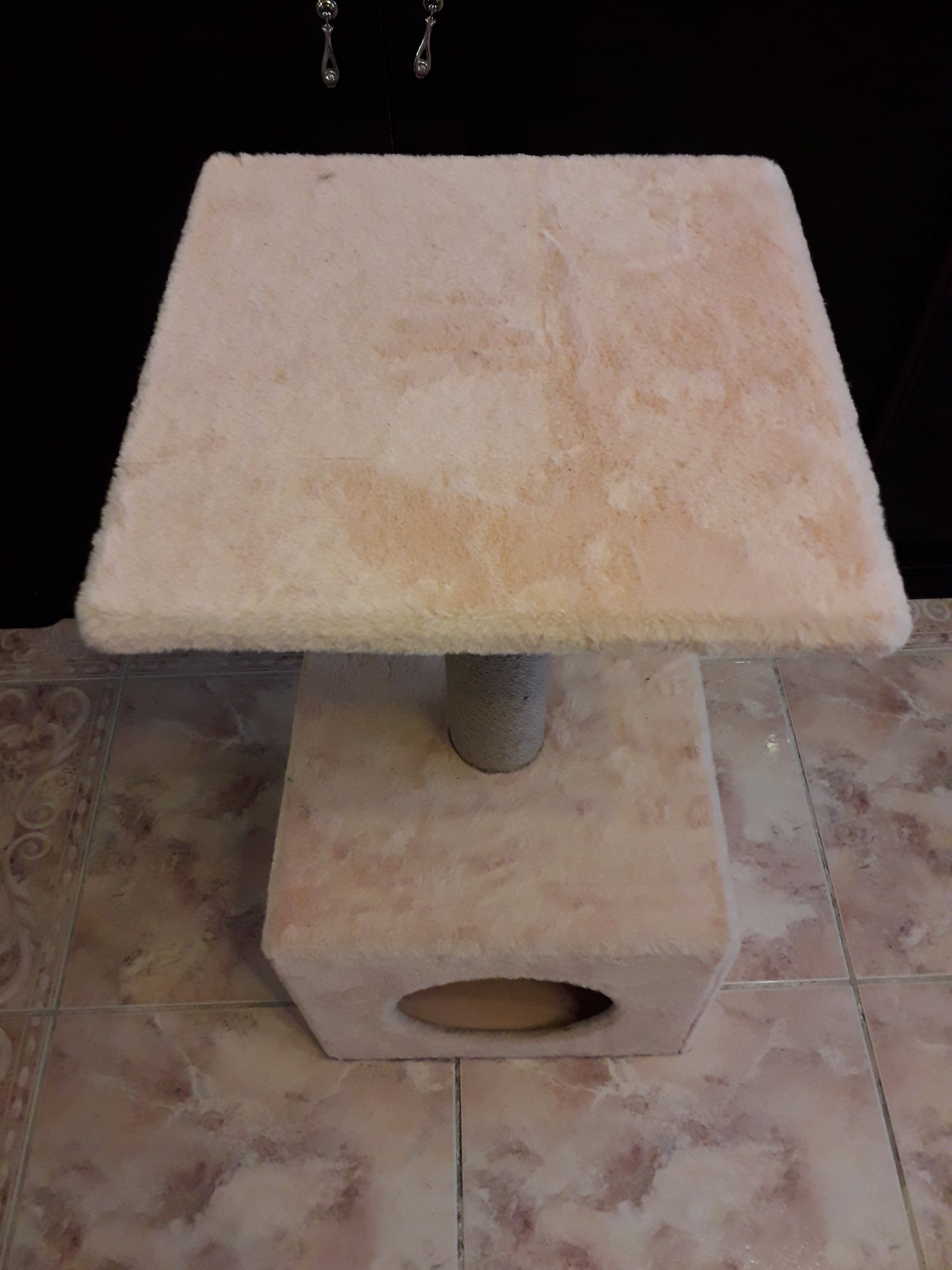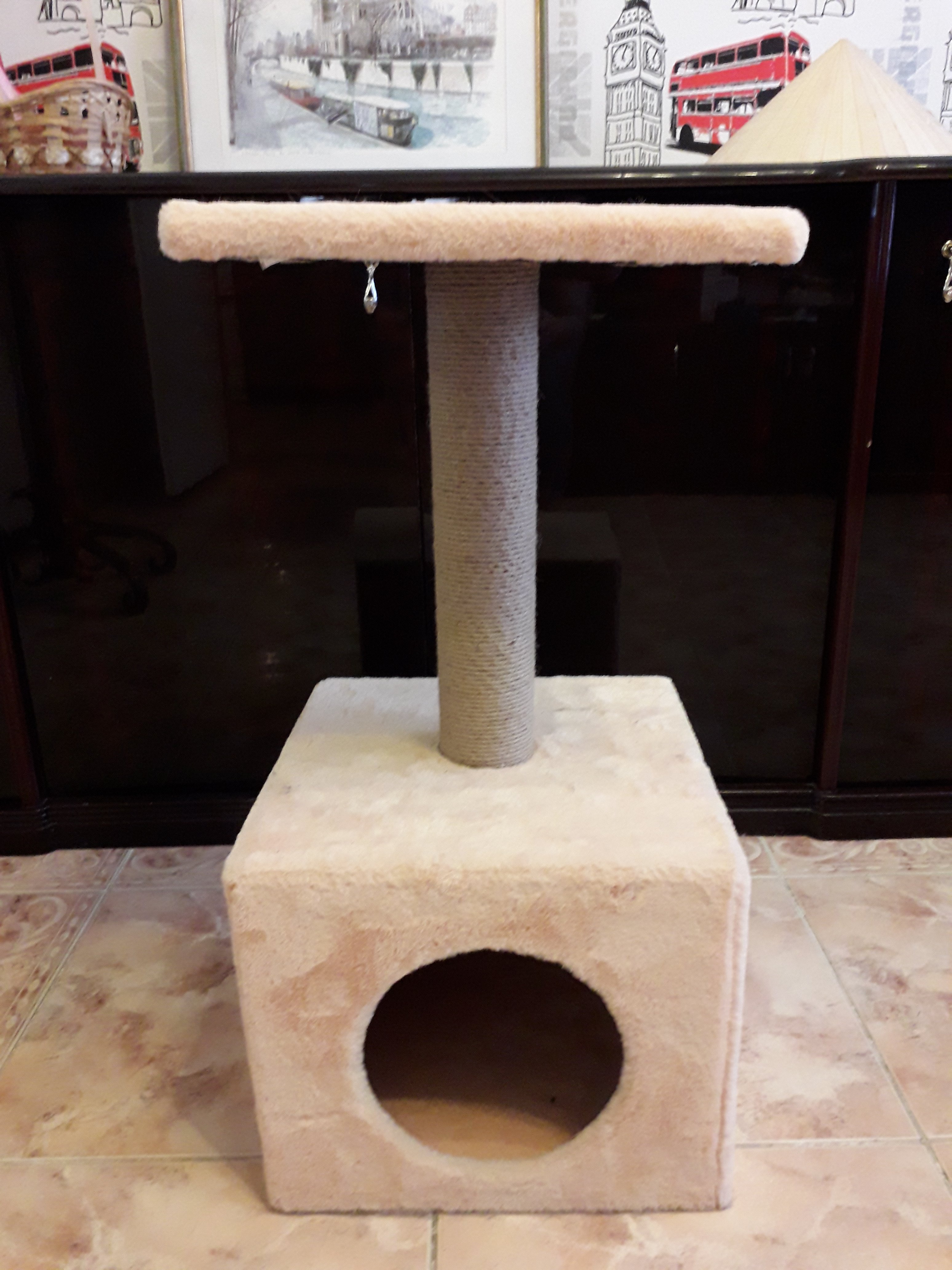 Совершенно новое, идеальнейшее состояние - котейка не захотела пользоваться своим подарком на день рождения)) Общая высота 80 см., высота\ширина\длина основания-домика по 40 см., диаметр отверстия в домик - 22 см. Цена 1500 р. Самовывоз. Забирать в Дзержинском районе, поселок Ангарский, остановка 82я школа. Торг.