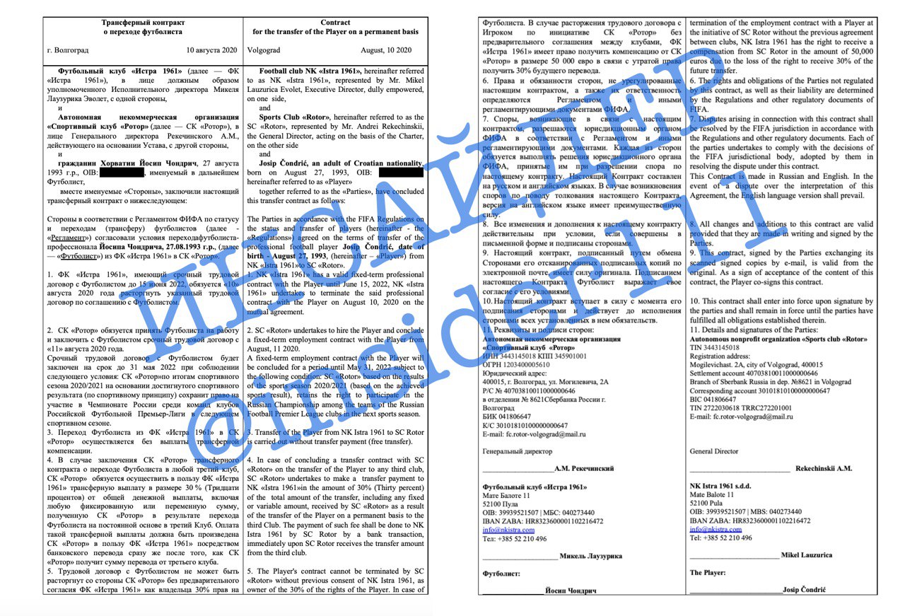 Просто писец что творится в клубе. Наглость и жадность менеджмента не знает границ. "На днях появилась информация о том, что волгоградский "Ротор" усиливает вратарскую позицию хорватским легионером Йосипом Чондричем из ФК "Истра-1961". Сообщение о переходе футболиста было опубликовано на сайте хорватского клуба. Как удалось выяснить Инсайдеру, "Ротор" действительно оформил переход футболиста и подписал с ним контракт до 20 мая 2021 года с автоматическим пролонгированием еще на год в случае, если "Ротор" сохранит прописку в РПЛ. Однако вскоре после подписания волгоградский клуб от иностранного вратаря отказался и расторг трудовой договор, о чем уведомил Управление по вопросам миграции ГУ МВД РФ по Волгоградской области. Между тем, согласно трансферному соглашению между клубами, в случае досрочного расторжения контракта с футболистом по инициативе "Ротора" волгоградский клуб должен выплатить сохраняющей часть прав на Чондрича "Истре-1961" компенсацию в размере 50 тысяч евро. Таким образом, на подписании-расторжении хорвата "Ротор" потерял как минимум 4.5 миллиона рублей, не считая агентских выплат и прочих расходов. Что это, некомпетентность управленческой команды Рекечинского или целенаправленные действия по распилу средств в клубе, получающем деньги из бюджета Волгоградской области? Это далеко не первый случай, когда "Ротор" расторгает трудовой договор с футболистом сразу после его подписания. Да и сам по себе трансфер выглядит странно - целесообразность приглашения вратаря-легионера, пропустившего 45 мячей в 27 матчах и еще в феврале потерявшего место в основном составе аутсайдера чемпионата Хорватии, вызывает сомнения. Очевидно, что Чондрич ничем не лучше Довбни и вряд ли вообще соответствует уровню РПЛ. Но вот по условиям контракта хорват должен был зарабатывать в Волгограде порядка 1 миллиона рублей в месяц без учета бонусов - большинство футболистов "Ротора" получают намного меньше."