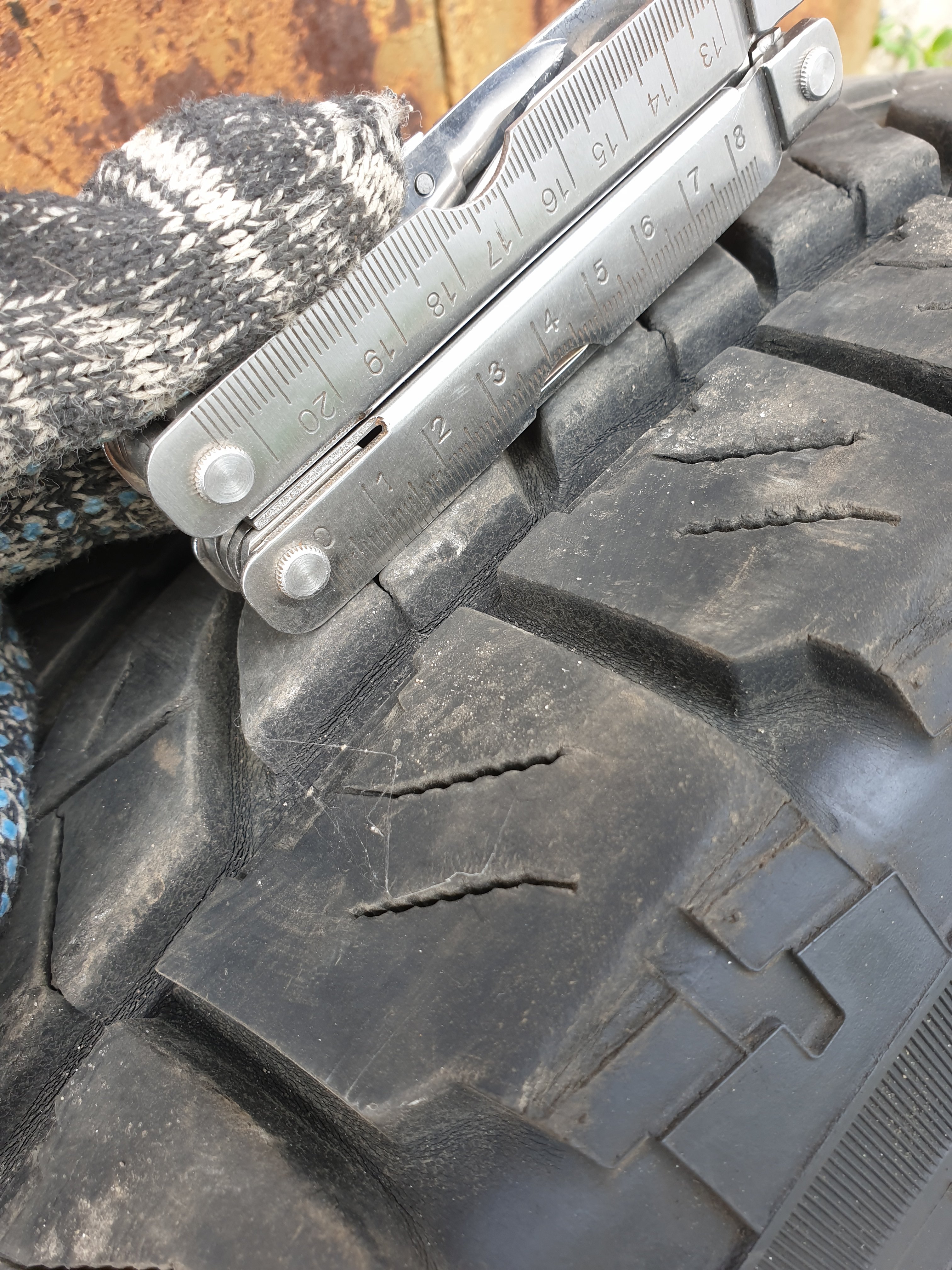 Резина 33 дюйма. Без проколов и боковых порезов. Протектор всех 4 баллонов на фото. Цена 20 т.р. за комплект.