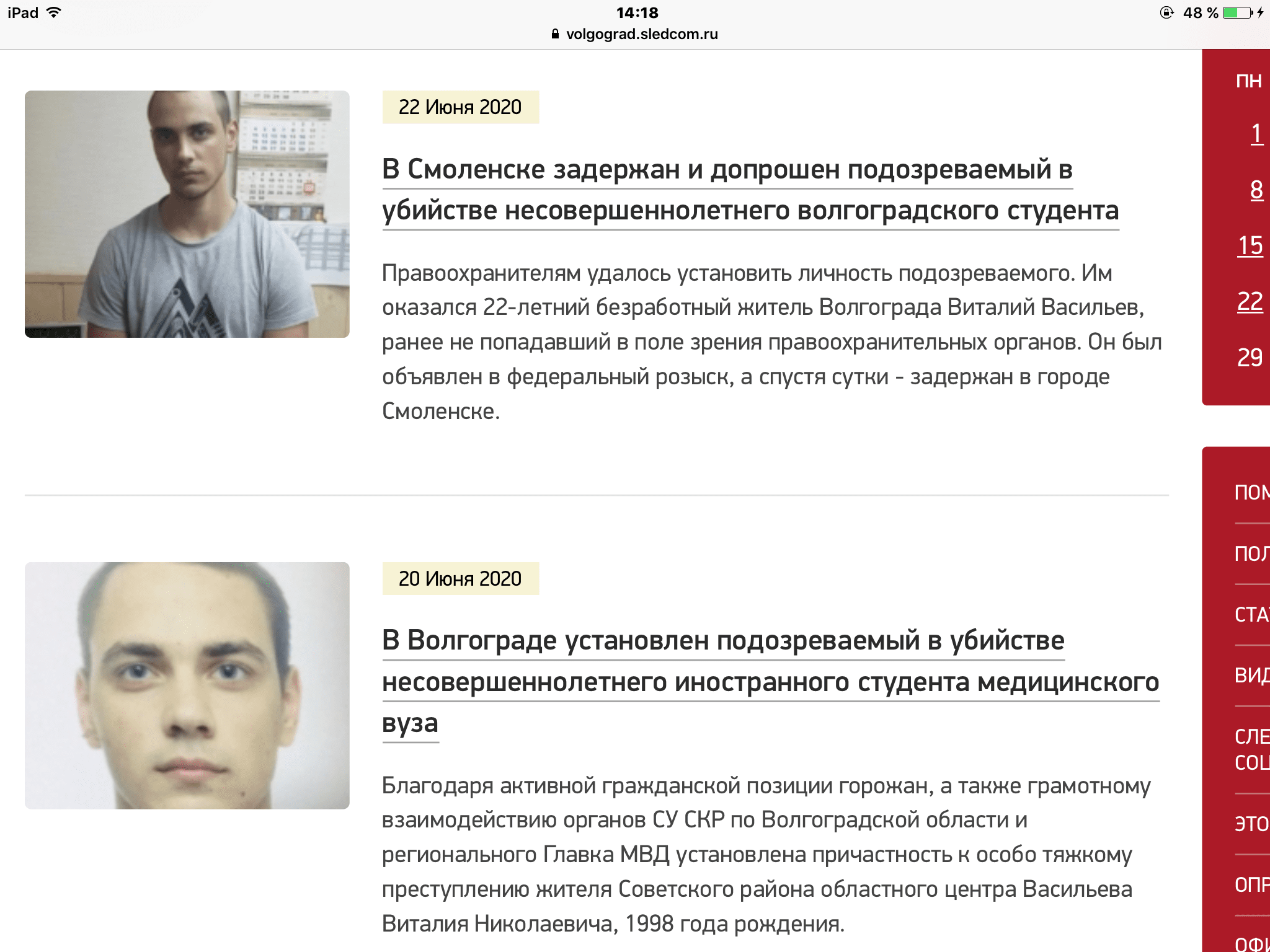 В 90-м или в 91-м, подзабыл уже, в Красноармейске, на людном месте, у всех на виду, урод зарезал молодую девчонку.. Лет через пять выловили бандочку и это дело раскрыли. Подрастающие отморозки старшего школьного возраста воспитывали в себе "настоящих волков".. Эту девчонку, первую вроде как, в карты проиграли в своем междусобойчике. Еще не одну закопали в лесопосадках после в яких издевательств.. ну и всяких подвигов типа быдлорэкета и прочих скачков за ними много было. Сообщали тогда про все это тогда достаточно невнятно. Слухи и, спустя уже достаточное время, заметка в газете - на десять строк. Виталик некий.. О ходе расследования уголовного дела по факту убийства 17-летнего студента волгоградского вуза - Следственного комитета Российской Федерации по Волгоградской области В Волгограде установлен подозреваемый в убийстве несовершеннолетнего иностранного студента медицинского вуза - Следственного комитета Российской Федерации по Волгоградской области Новости - Следственного комитета Российской Федерации по Волгоградской области Там на сайте СК и фотки и вроде и видео допроса уже есть.