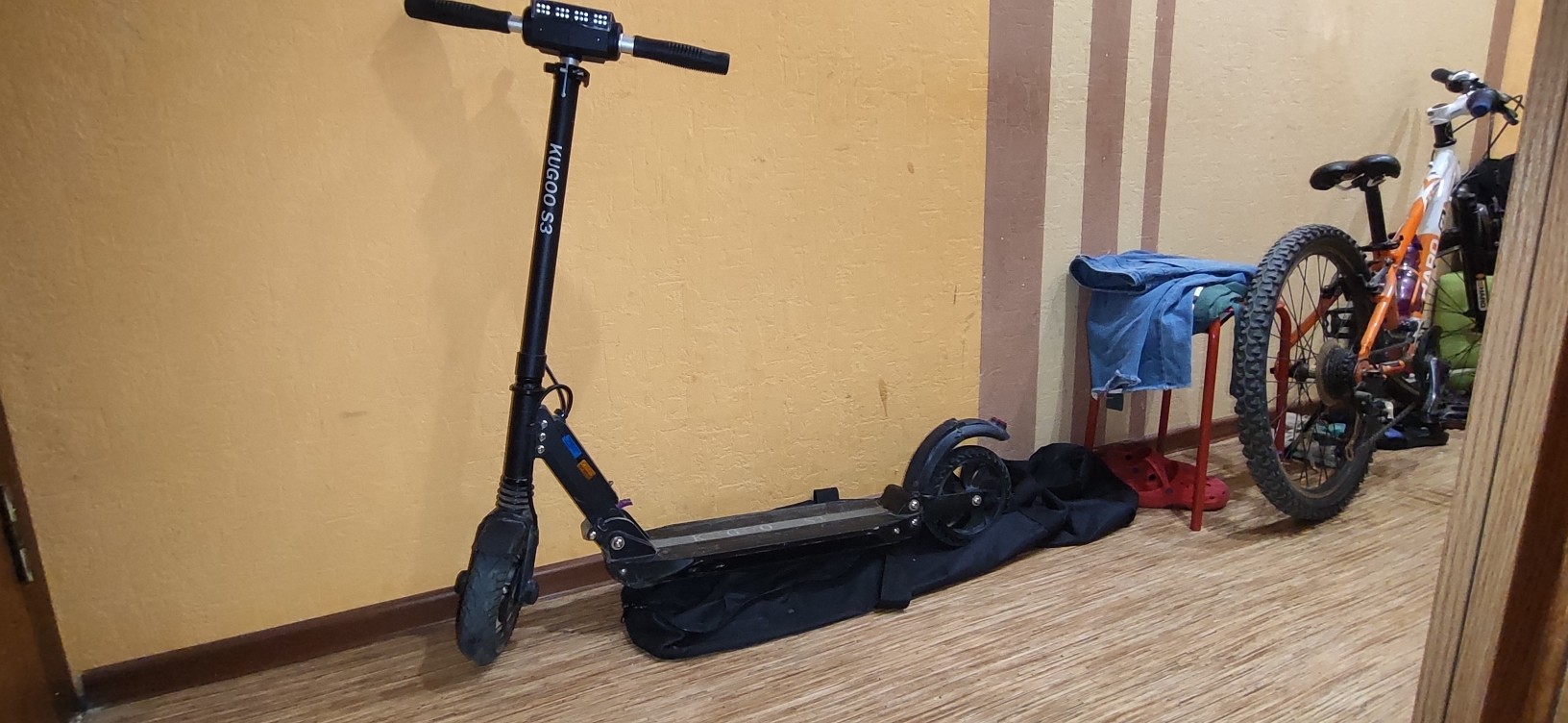 Покупал сыну в прошлом году. За этот год пробег составил 647 км. Состояние на 4, так как треснуло заднее крыло-тормоз( это как правило расходник) и самокат все же ездил. Крыло было реанимировано и с того года проблем с ним нет. От себя еще добавлю, что резвая игрушка, меня взрослого со скоростью 27 кмч по ровной дороге тащит. На фото дисплей получился немного размыто, но в жизни не так. В этом году сын отдал предпочтение велосипеду и самокат решили продать. Цена 8999 с учетом цен на новый 15.