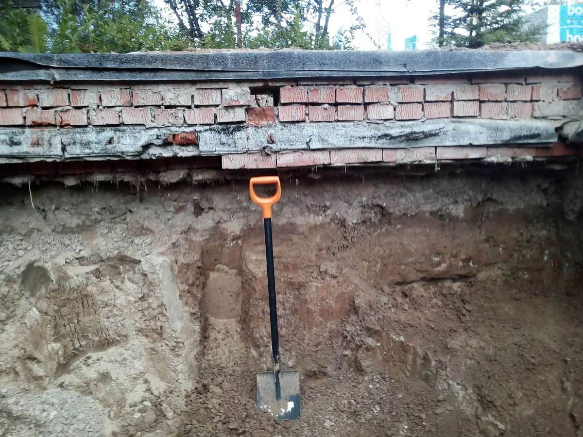 Извините, но после приобретения дачи, вопрос на вопросе, после рукожопых строителей. Хоть одну тему делай и там спрашивай. В общем, купили дачу, на участке кирпичный дом, кладка в кирпич, с пристройкой из кирпича и деревянной кухней. Пристройка вся в трещинах по два, а то и 3 сантиметра. Одна из стен прогнулась внутрь, не знаем, долго продержится так или нет. Предыдущие хозяева сказали, что трещины как появились, так больше никаких подвижек и не было. Вчера начали делать ремонт, обнаружили под линолеумом лючок в подпол (о котором никто нам не сказал). Заглянули, а там почти все стены в воздухе висят, не знаю, на чём вообще всё держится. Фундамента, как такового, нет, просто на землю намазюкали раствор и на него возводили стены. Фотки нет, но нашёл в интернете что-то подобное: Видать грунт просел и осыпался. А вот фотки стен в пристройке: По хорошему, напрашивается всё снести и построить заново, но... годика так через два, а пока лишь бы всё продержалось до этого времени. Самые большие трещины я стянул строительными шпильками М10 через пластины, чтобы стену выровнять. Вопрос - как поступить со стенами? В смысле, как их снизу укрепить? Соседи подсказали, что подложить кирпичи, а в интернетах прочитал, что лучше всего залить раствор под всеми стенами.