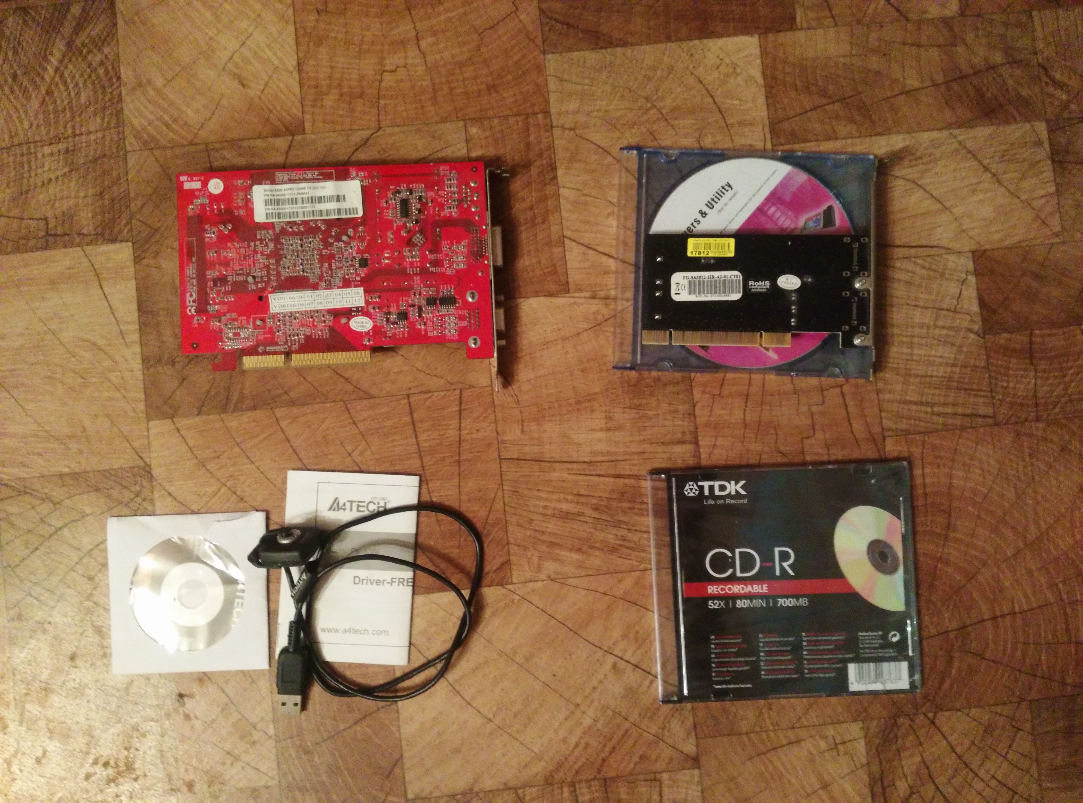 В принципе всё видно на фото: - плата для старых материнок, чтобы читать sata диски - камера, модель на фото - видеокарта (состояние неизвестно) ну CD-R новый в подарок) Хотелось бы живую, рабочую оптическую мышь под USB и (или) простую флэшку от 8 гб Если ничего не срастётся и ни у кого не будет встречного хлама для обмена, то отдам даром или выкину...