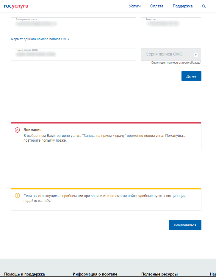 очень странно. у меня родственники пытаются записаться, уже недели 2-3. безуспешно. до выбора времени и поликлиники процесс просто не доходит. всё стопориться вот на этом: очень странно, что у кого-то процесс идет дальше, область-то одна хотя, им уже сильно 65+. может в этом дело?