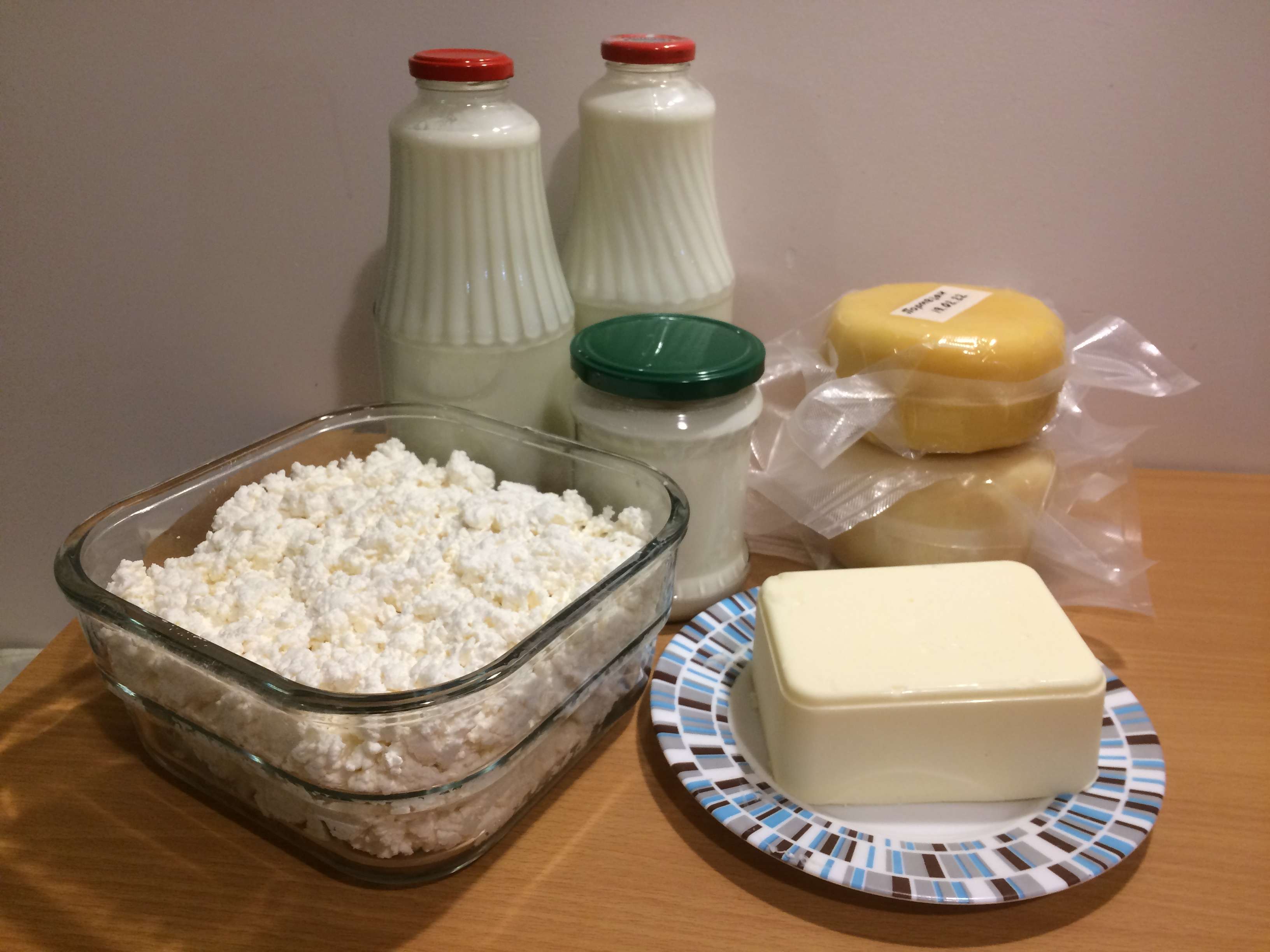 Наш ответ на санкции. Йогурт, сметана, творог, сыр, масло. Молоко берем сразу 20 литров. На втором фото закваски.