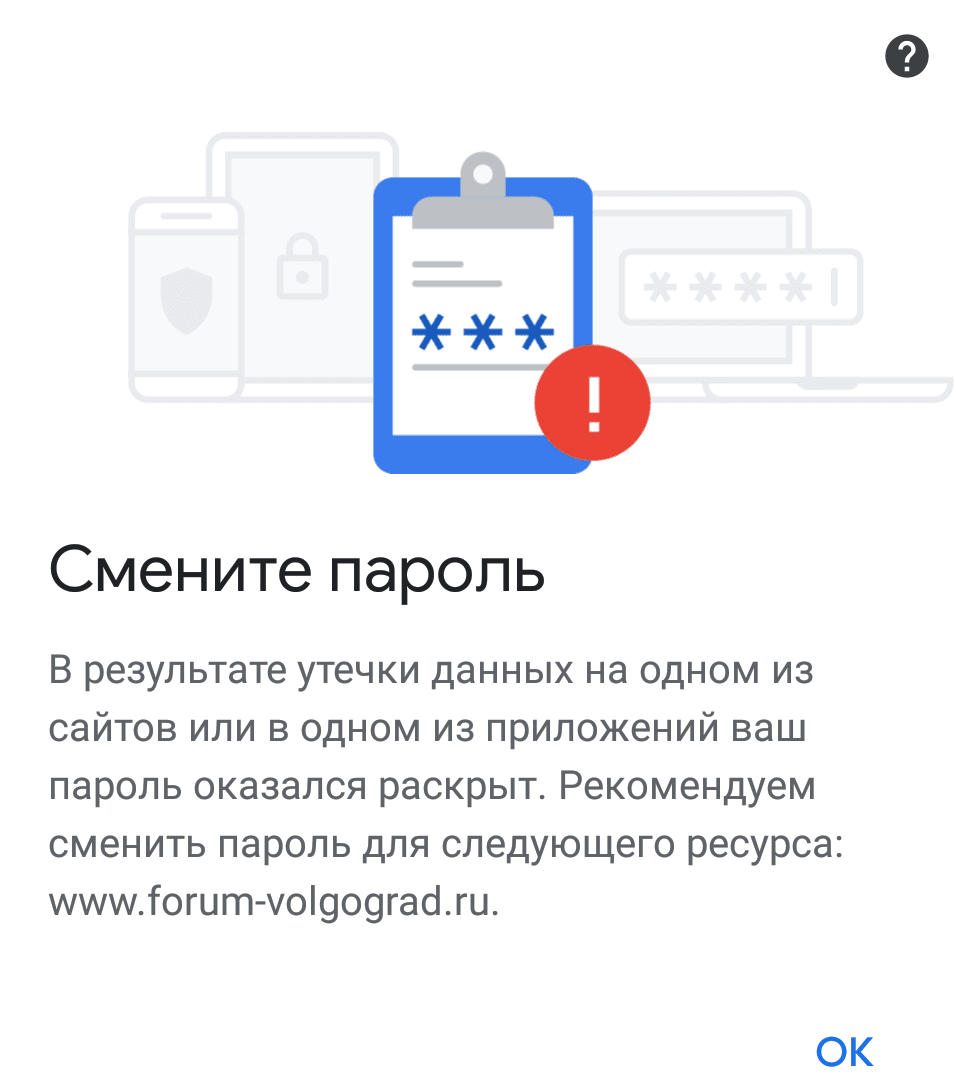 https://www.cyberforum.ru/viruses/thread2589286-page2.html Разобрался. Проблема решена и выявлена. 1. Google Chrome хранит пароли у себя в облаке, и если они утекают, то он показывает какие именно пароли скорее всего утекли, и из-за этого появлялось сообщение. Но я не думаю, что у меня их кто-то украл. Но всё же. Всё может быть. А также, Google Chrome мониторит наличие паролей в сети, и, если он находит, он естественно сообщает об этом. Это что касаемо сообщения. 2. Теперь, касаемо того, что не весь контент отображался, это Google Chrome блокировал сохранение cookie, и из-за этого были проблемы. Сегодня я не мог войти на детский youtube YouTube Kids. Пришлось разбираться, и я выяснил, что, Google Chrome заблокировал сохранение Google cookie и поэтому я не мог войти. Но, это не сам Google Chrome заблокировал, то есть, если быть точнее, это как-то я сделал, возможно, посредством какой-то программы и так далее, но, не важно, главное, что cookie были блокированными в Google Chrome, и самое что интересно, эта настройка сохранялась в облако, и когда переустанавливал Google Chrome, проблема исчезала, а при включении синхронизации с облаком, проблема возникала. a. Для того что бы решить проблему, необходимо, в окне Google Chrome, в правом верхнем углу будет значок, как на картинке ниже, но, этот значок будет в том случае, если на этом сайте будут заблокированы какие-то cookie. В общем нажимаем на этот значок, далее нажимаете на ссылку и далее во вкладке «Заблокировано» там разблокируете cookie и всё, проблема исчезает. Так я победил все аналогичные проблемы на всех сайтах. Всё, всем удачи. А пока, пока. Если кому было полезно, ставим лайки.