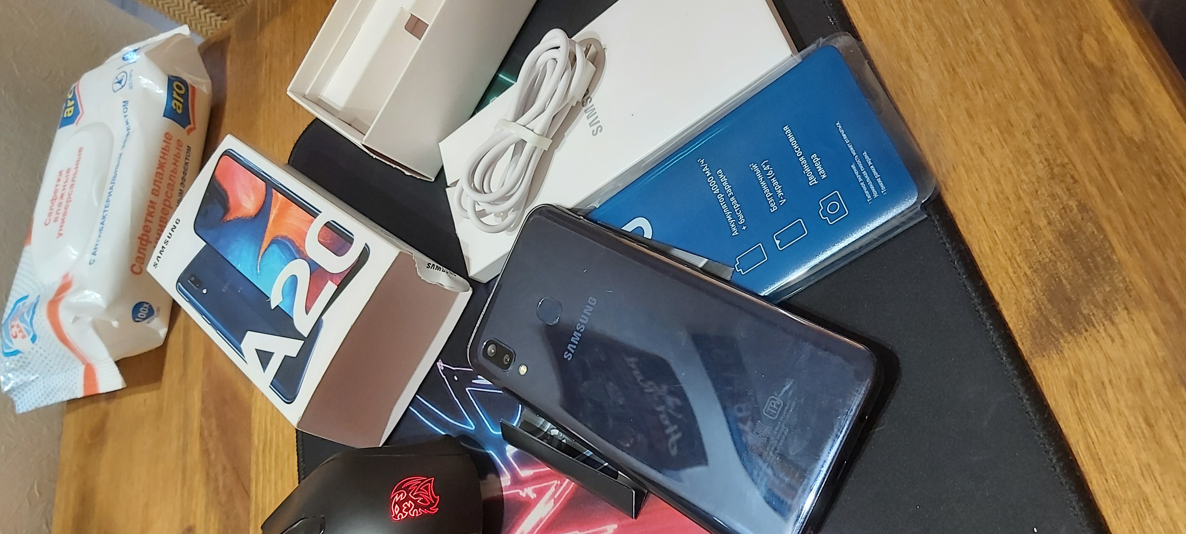 Samsung a20 32 гига своей памяти и 3 гига оперативной. Дисплей 6.4 дюйма, очень приятные цвета, прям глаз радуется) Десятый андроид! Очень приятный телефон, в руке лежит просто превосходно. За счёт неплохого процессора и достаточного количества оперативки, все работает крайне шустро) Полный комплект(коробка, бумажки, адаптер, шнур, наушники) Состояние очень хорошее, на задней крышке есть следы эксплуатации, дисплей практически идеал Менялся аккумулятор, больше для самоуспокоения, казалось что не так держит заряд Для форума 6500