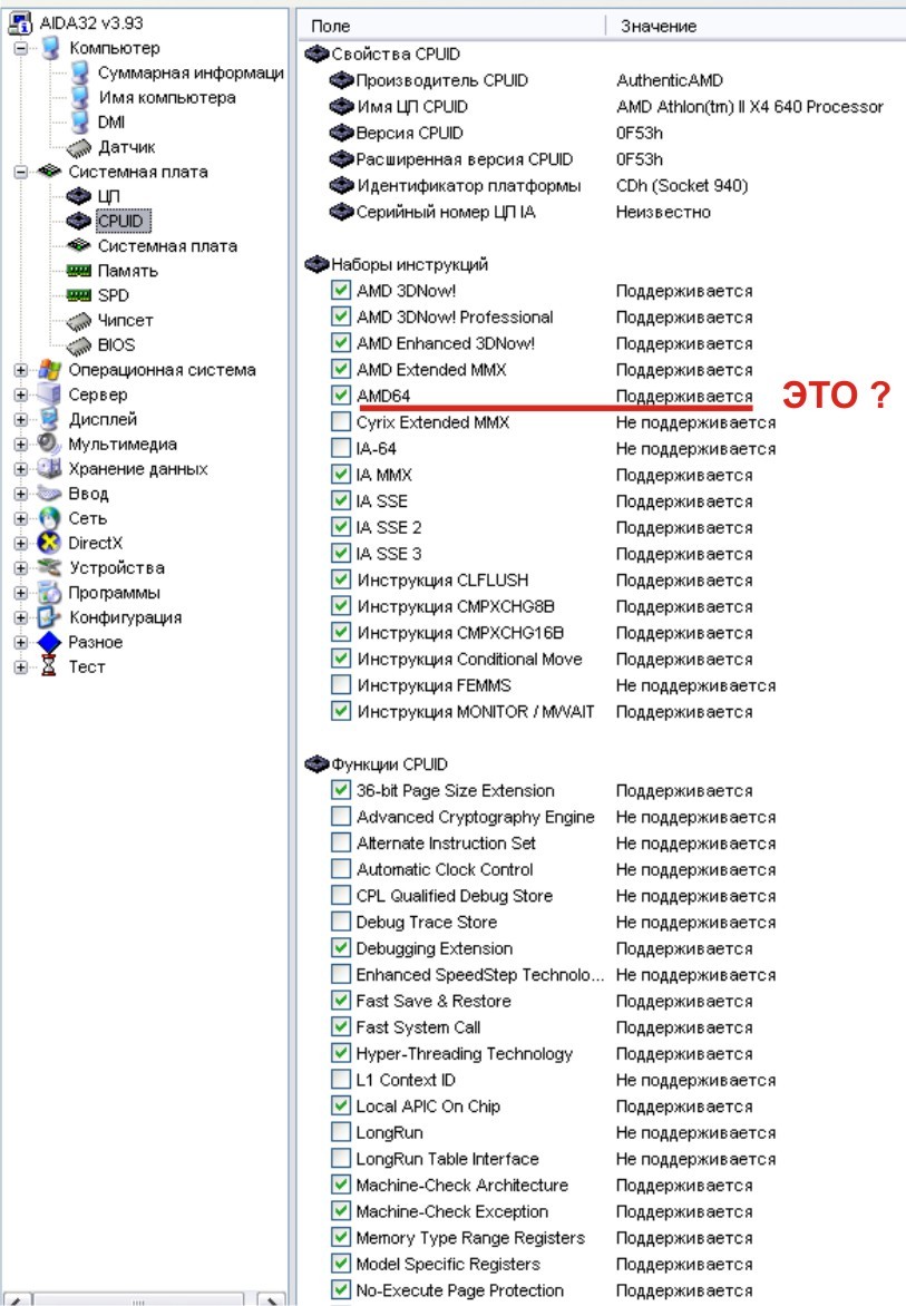 Друзья, такой вопрос: где глянуть мой процессор, чтоб понять можно ли ставить Виндус 10х64 ? Написано, что есть проц 86, то ставится только ОС10х32. В аиде что-то не вижу такой информации. И вообще, какую ОС10 посоветуете - 32 или 64 ?