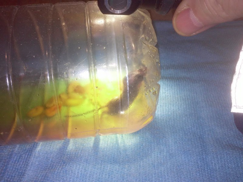 На текущий момент улов семь штук. Снять на мобилку трудно, фокусируется на стенку бутылки, и ни черта на снимке не видно. Кое как с мощным фонарем что-то получилось. Дец какой-то, ловлю мышей для кота.