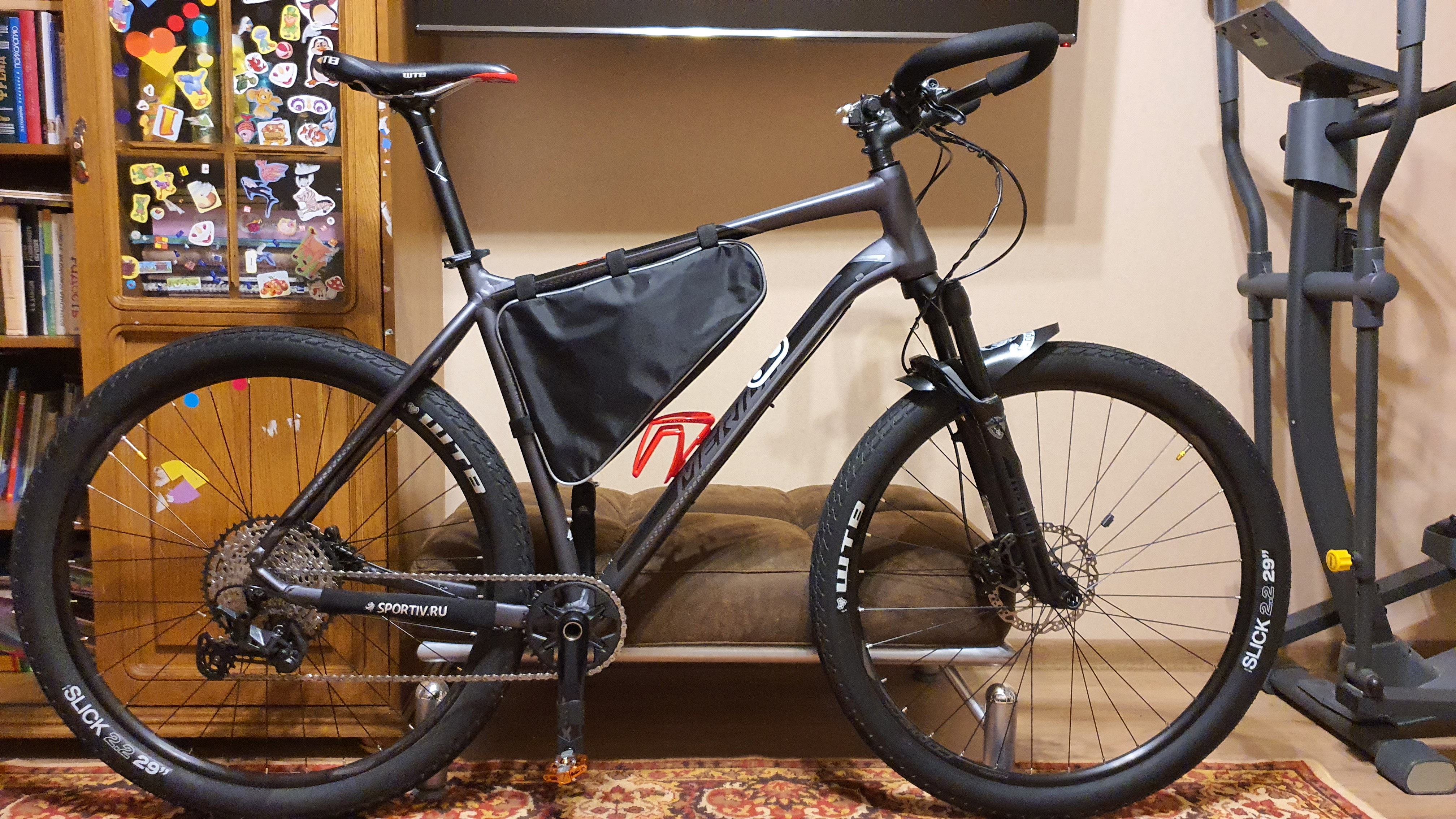 Куплен 02.2020 на спортиве. Ростовка 23. Проехал 800 км. Что есть: две цепи, стоковых покрышки заменены на слики WTB, сумка на раму, ну держатель фляги понятно, руль поменял на туристическую бабочку, седло WTB volt, звезда системы поменяна с 32Т на 36Т для удобства городского катания, педали контакты crank brothers, ну защита пера, шатунов, переднее крыло это я не считаю. Вело компьютер Sigma простенький для скорости. Всё стоковые запчасти: седло, руль, покрышки, звезда все в комплекте. Документы о покупке есть. Вел большой, для крупного и высокого катальца. Серьёзный аппарат. Диаметр колеса: 29" Рама: BIG.NINE TFS material: aluminum 29 wheelsize 135x9mm axle standard BSA bottom bracket standard Smooth welding Материал рамы: Алюминий Вилка: Manitou Markhor Comp Air 100mm suspension travel Tapered Remote lockout 51mm fork offset Блокировка вилки: Есть на руле Амортизация: Воздух - масло Переключение скоростей: Shimano SLX Задний переключатель: Shimano SLX Shadow+ Манетки: Shimano SLX Система: Shimano SLX 32 teeth 170 mm-S, 175 mm-M up Кассета: Shimano M7100 10-51 teeth 12 speed Каретка: Shimano BB-MT800 Цепь: Shimano SLX Тормоза: Дисковые гидравлические Тормозная система: Дисковые гидравлические Передний тормоз: Shimano MT-400 2 piston Задний тормоз: Shimano MT-400 2 piston Руль: MERIDA EXPERT CC material: aluminium 720mm width flat Рулевая колонка: MERIDA M2331 Втулки Shimano MT400-B / Shimano MT500 Вынос: MERIDA EXPERT CC material: aluminium 31.8mm diameter 6° stem angle S-70 mm, M-80 mm, L-90 mm, XL-100 mm, XXL-110 mm Ручки: MERIDA COMP EC Седло: MERIDA COMP CC Подседельный штырь: MERIDA COMP CC material: aluminium 30.9mm diameter 0mm setback Педали: VP VPE-891 Спицы: Black stainless Передняя втулка: Shimano MT400-B 110x15mm width front hub 32 spoke holes Centerlock Задняя втулка: Shimano MT500 135x9mm width rear hub 32 spoke holes Centerlock Покрышки: Maxxis Ikon Втулки: Shimano MT400-B / Shimano MT500 Вес: 11,86 Состояние полный идеал, все лето считай простоял. Колеса отрегулированы. Всё сделано с любовью, даже колпачки на нипелях. Камеры 2 штуки новые WTB в подарок. Педали 3000 к цене. Цена 65000. +79093891656