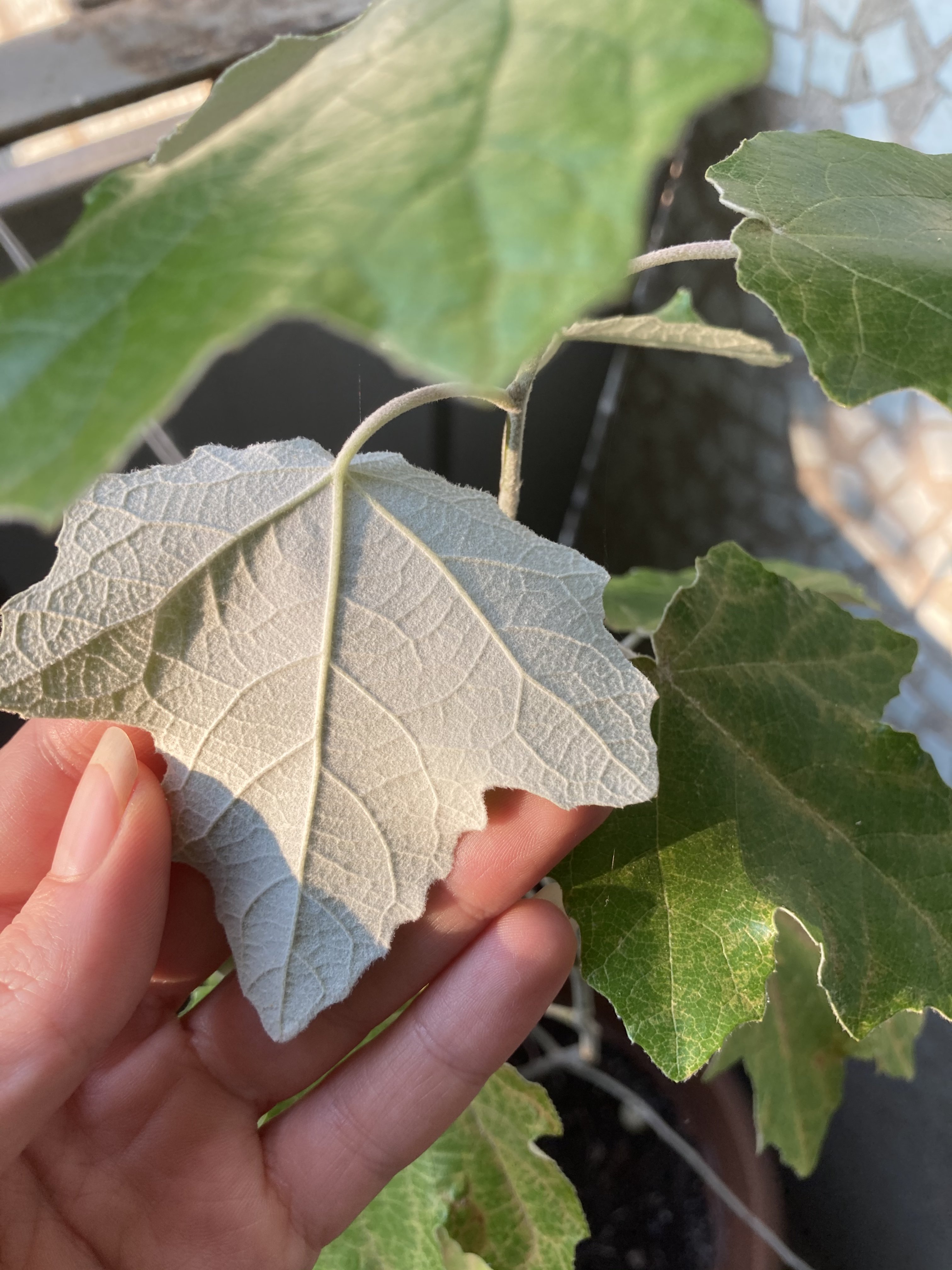 Приложение распознающие растения сказало, что это populus alba, по русски тополь белый, он же тополь серебристый.