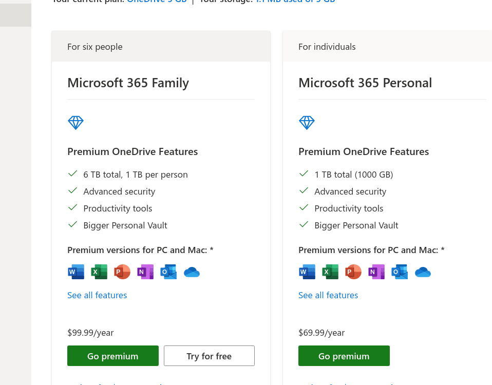 не люблю микрософт, но щас спецом зарегался в этой ихней шарашке... это который по 800 руб в месяц тарифный план или лайфхак какой есть навроде моих старых 100гиговых мейлрушных облаков? так то щас блюрейки от 60+ р нормальные везде продаются