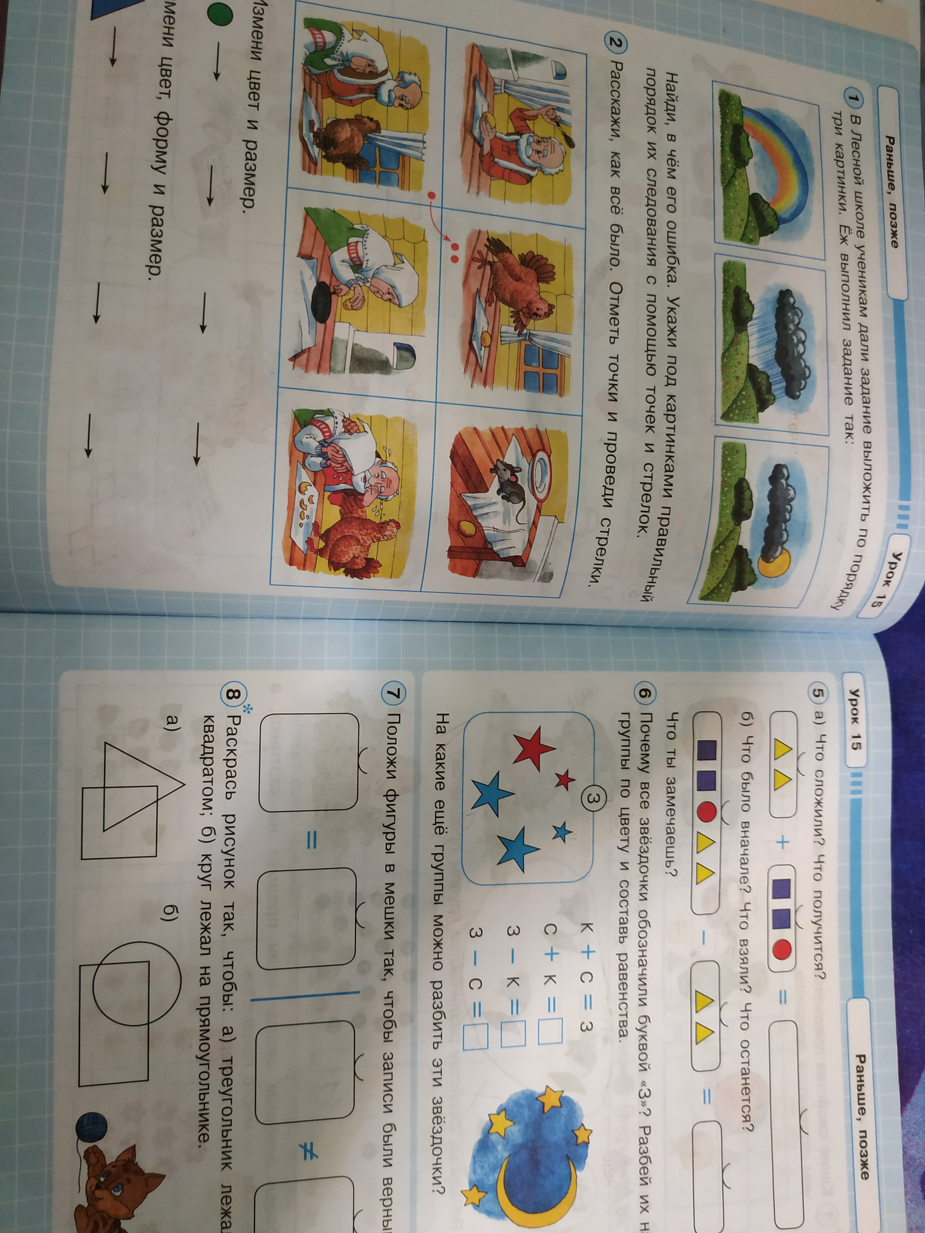 Опять же,помимо центра подготовки,куда дочь уже год ходит, планирую ее с января отдать ещё и на подготовку именно в то учебное заведении,куда она с сентября пойдет. Знаний ей не прибавится особо,но она сможет познакомиться с расположением всего внутри школы,усвоит правила поведения и сможет познакомиться с будущим учителем и, даже, завести друзей- будущих одноклассников. С сыном тем же путем готовились к школе, достаточно легко освоился) Ну и для примера несколько страничек из тетрадей- учебников для 1 класса. Программа " школа 2000" Последний разворот- это конец 1 класса,во втором классе начинают считать в столбик до тысячи примерно. Ну и плюс к вышеперечисленному,если легко идёт математика,учите состав числа,ребенок скажет спасибо))