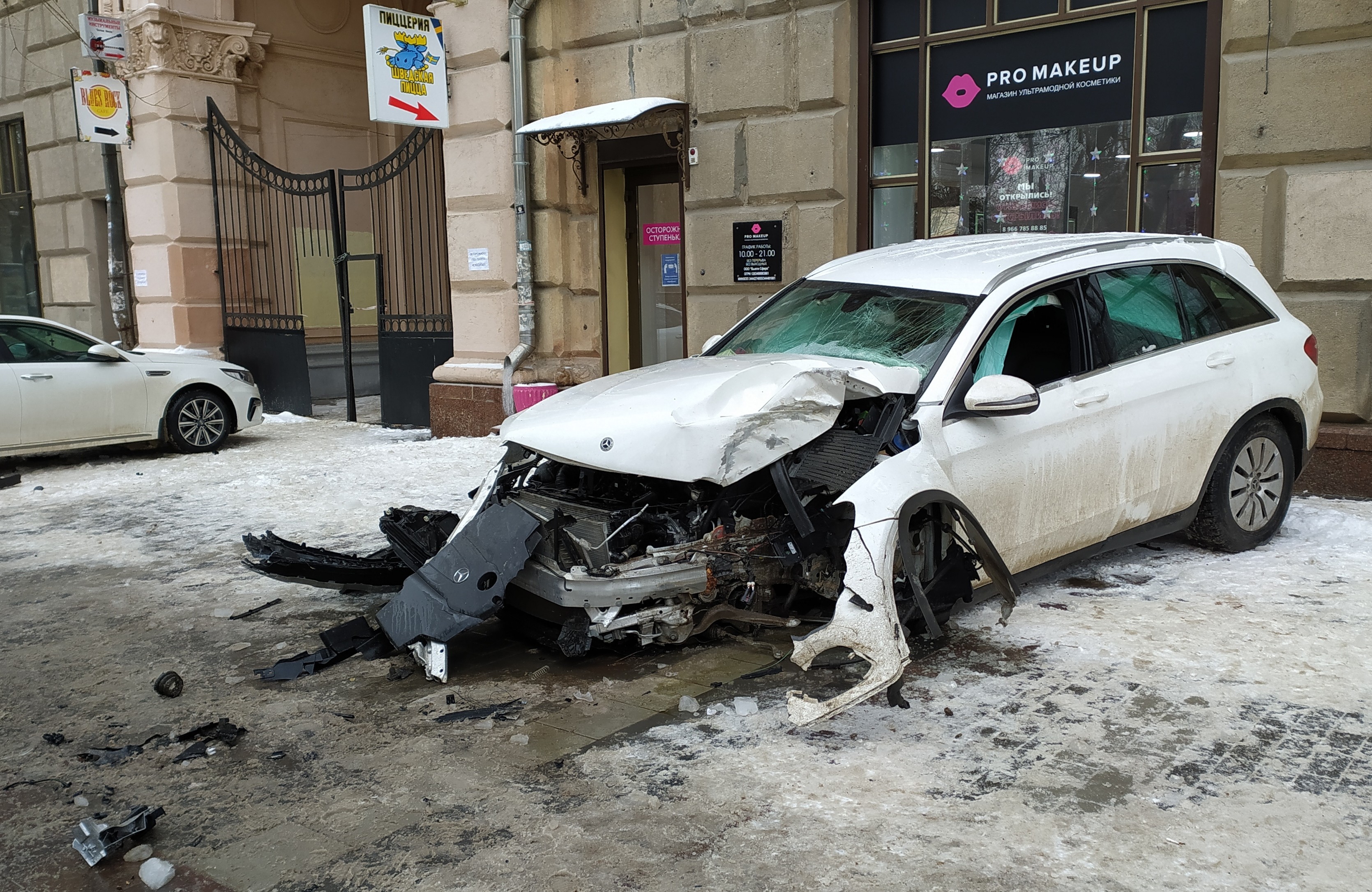 Водитель мерса вместо тормоза нажал на газ, его швырнуло сначала на стенку подземного перехода, потом — на дерево, затем на тротуар