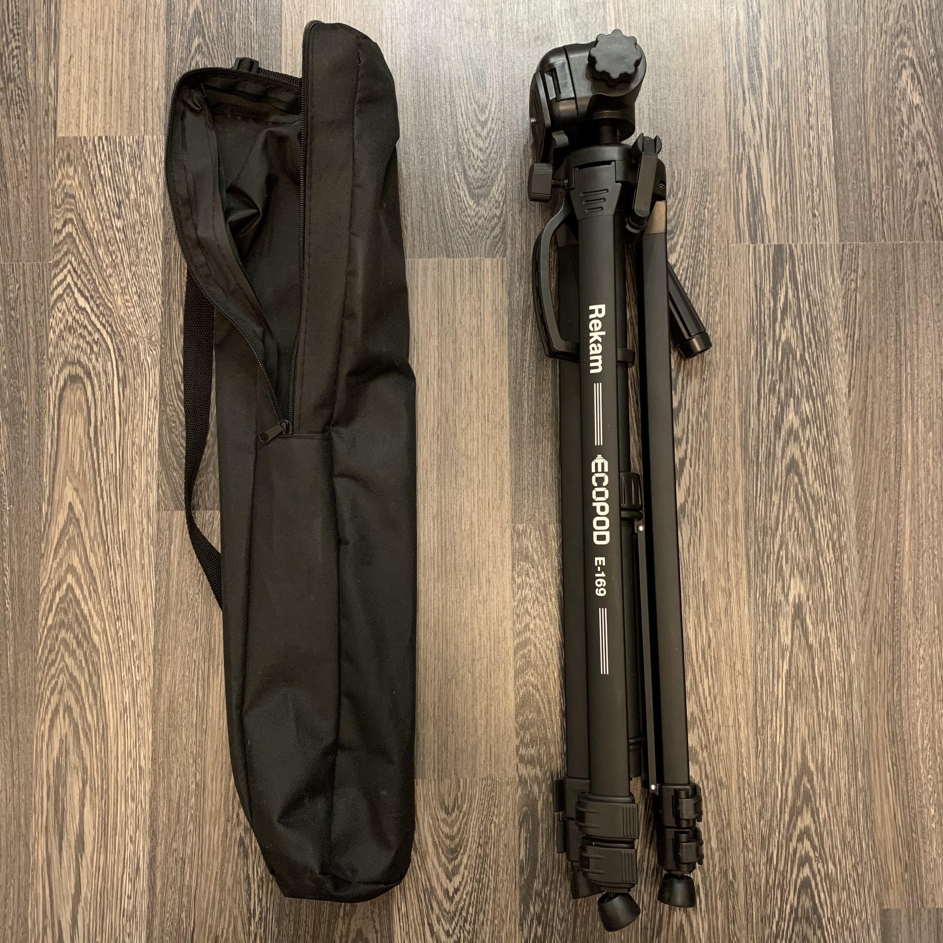 Штатив в идеальном(новом) состоянии. Использовался буквально один раз. Краснооктябрьский р-н Цена: 2000р Описание Штатив-трипод REKAM Ecopod E-169, изготовленный из качественного материала, прекрасно подойдет как начинающим фотографам, так и профессионалам. Вы всегда сможете брать его с собой, так как он не обременит своим весом 1250 г и длиной в сложенном виде 610 мм. Чехол с крюком, входящий в комплект, сделает устройство еще более мобильным. Его высоту лучше всего подбирать по росту фотолюбителя. Данная модель имеет максимальную высоту 1620 мм. Три секции штатива-трипода REKAM Ecopod E-169 сделают его более устойчивым, а резиновые опоры на них предотвратят скольжение устройства. Камера устанавливается на специальную площадку, на которой крепко и надежно закрепляется, а ручка фиксирует положение и обеспечивает плавное наведение. Благодаря этому получаются прекрасные, четкие и качественные фотографии. Высота съёмки 600-1690 мм Максимальная нагрузка на штатив 6 кг Материал алюминиевый сплав Тип головки 3-х осевая Количество секций штанги 3 Крюк для сумки Да Чехол в комплекте Да Длина в сложенном состоянии 610 мм Цвет черный Вес 1250 грамм