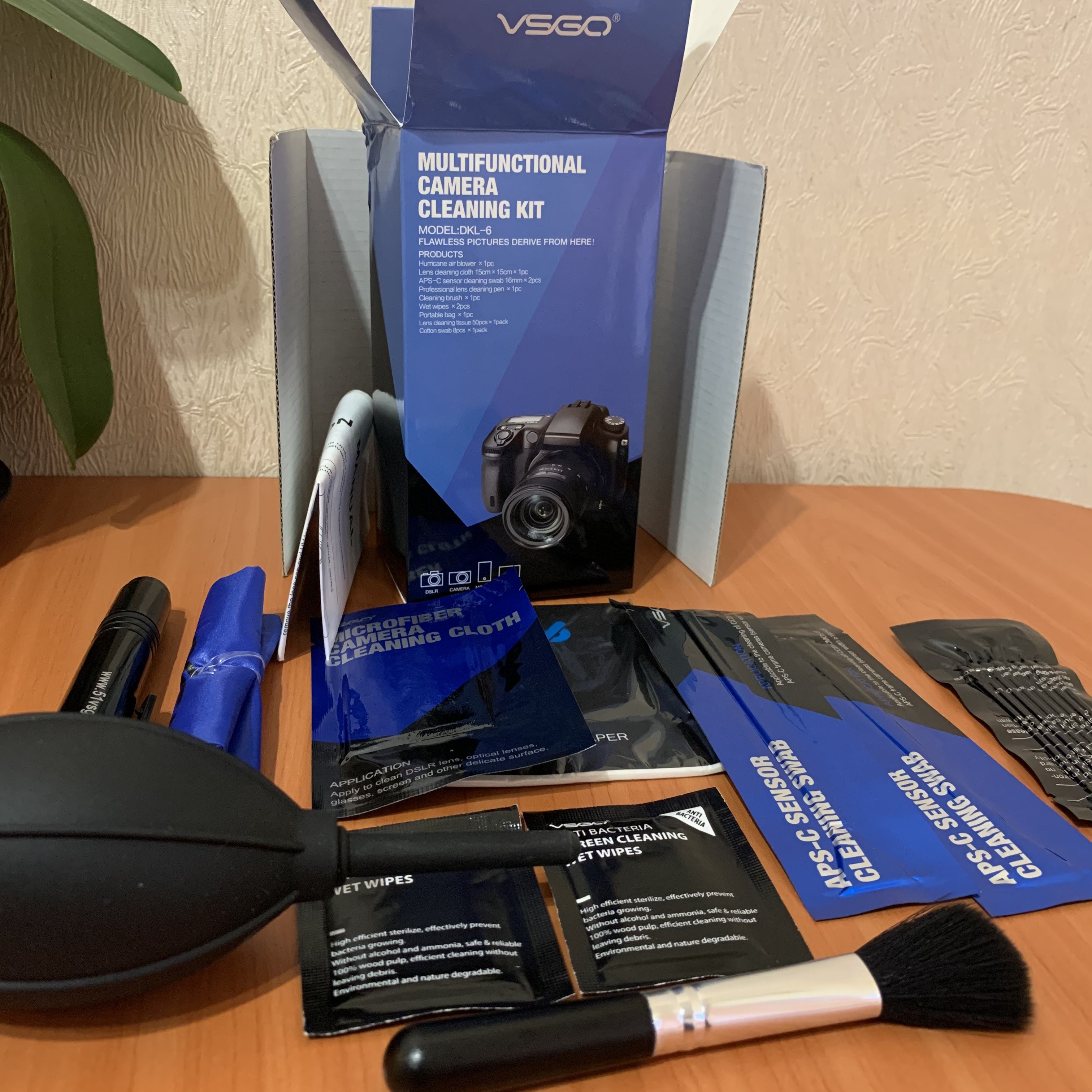 Продаю набор VSGO DKL-6 для чистки камеры с кроп-матрицей. Краснооктябрьский р-н Цена: 800р Набор для чистки оптики VSGO DKL-6 включает в себя: Груша для сдувания пыли "Харрикен" - 1 шт. Салфетка из микрофибры 15 x 15 см- 1 шт. Сухая швабра для чистки APS-C матриц DDR-15/1 - 2 шт. Карандаш для чистки оптики DDL-1 - 1 шт. Кисточка для оптики - 1 шт. Влажная салфетка - 2 шт. Бумажные салфетка для оптики - 50 шт. Хлопковые палочки - 8 шт. Сумка для переноски - 1 шт.