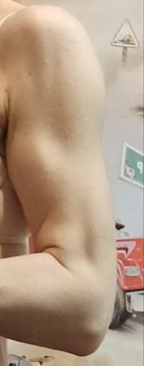 Объемы на самом деле не особо прибавились. Верхнее фото рука в напряжении, а нижнее нет) Я до сих пор отжимаюсь с трудом. Парадокс...