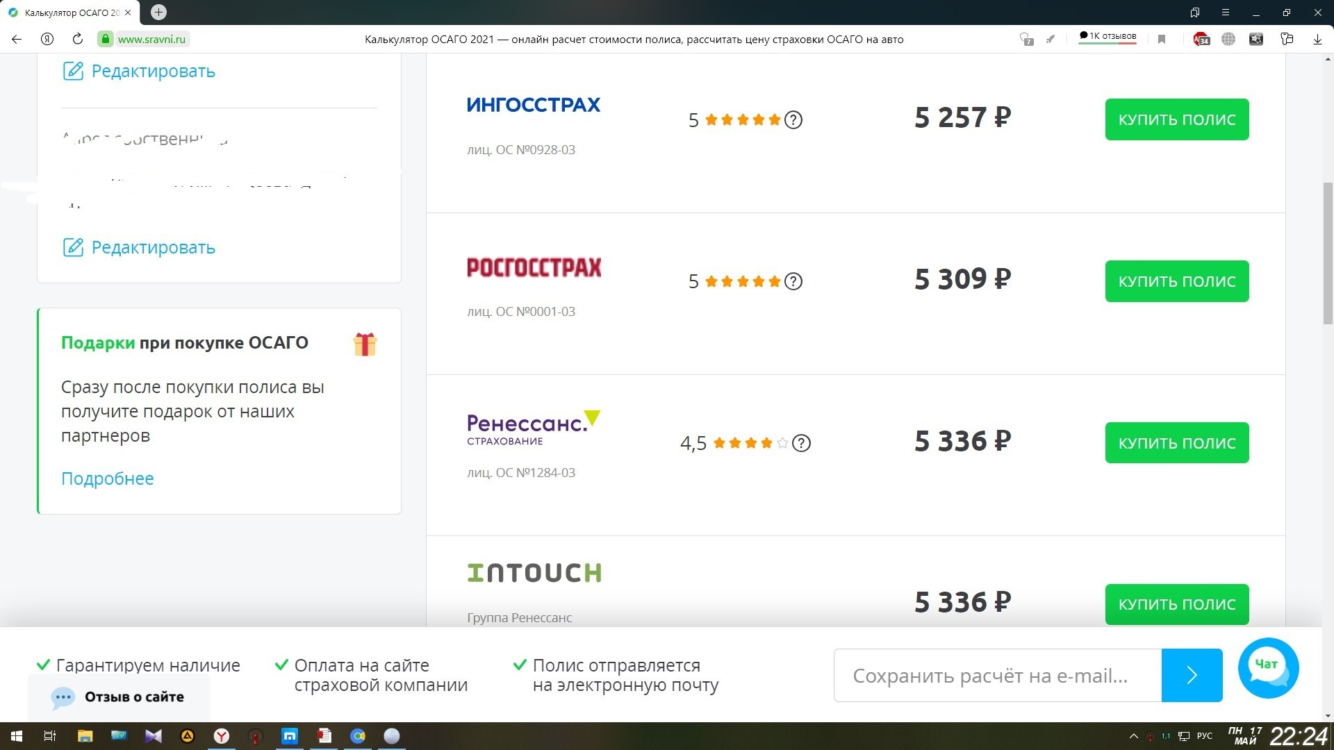 Мучаюсь в продлением на сайте текущей страховой (Альфа) третьи сутки. Ренессанс вообще отжигает - то адрес им не тот, то поменяйте браузер, то хз что. Остальные СК - дороже на 1000.
