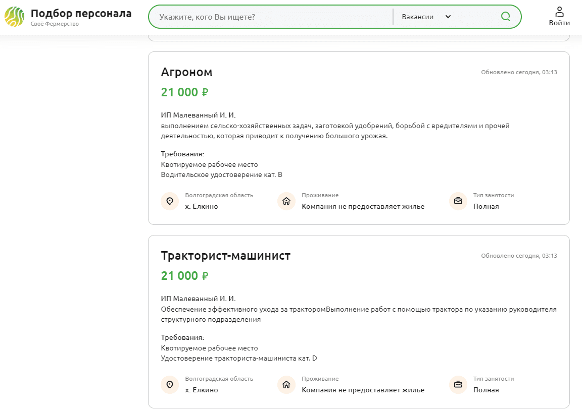 А так, вот есть Тракторист-машинист - с. Чебаки | Вакансии и работа - Своё Фермерство и зоотехник в Михайловке Зоотехник - с. Михайловка | Вакансии и работа - Своё Фермерство Агрономы тоже в цене.