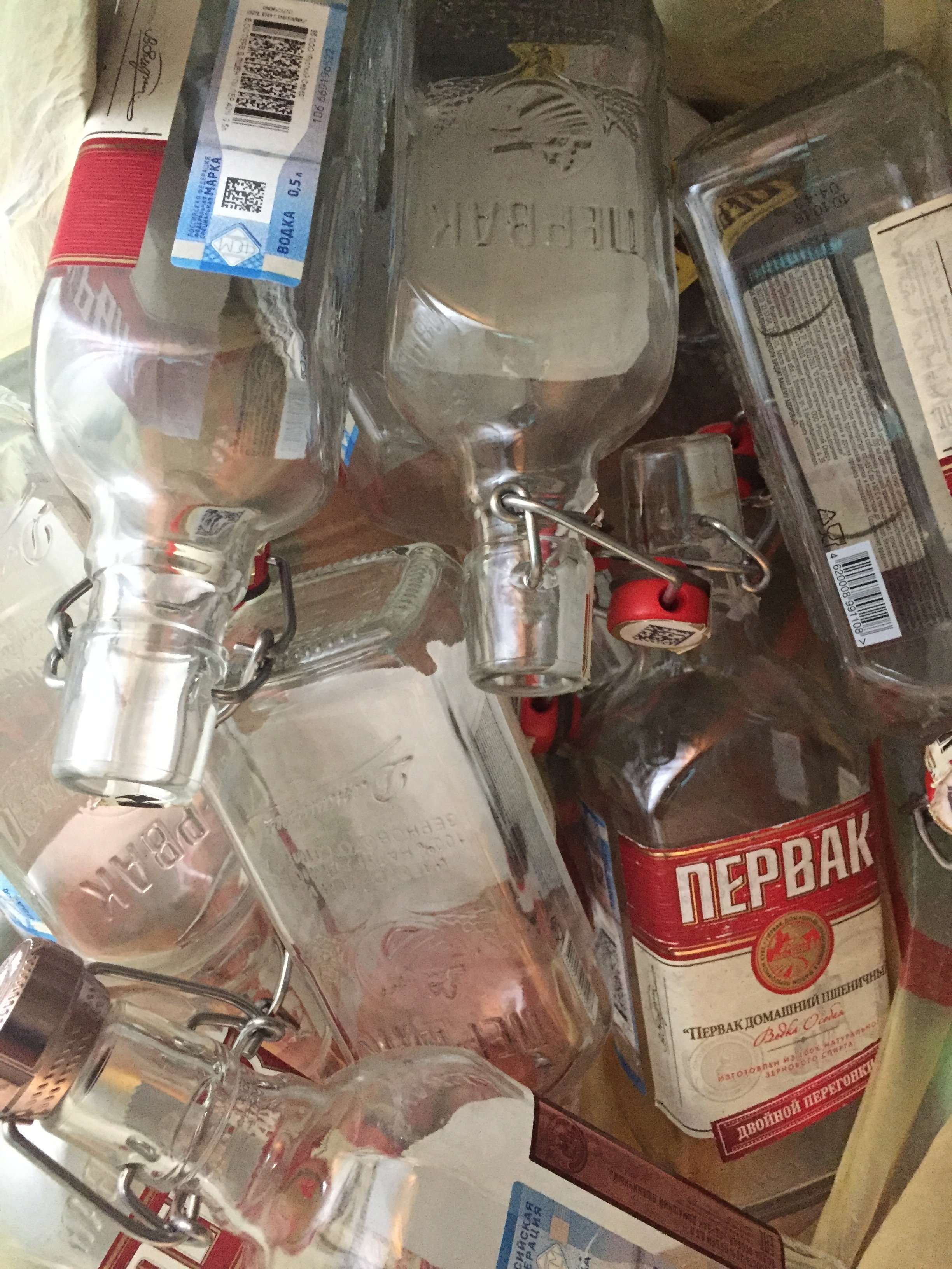 странная ситуация: есть украинский, есть российский дизайн тары, в-общем, схож. первые - вроде как действительно самогон, вторые - просто водка, само-собой