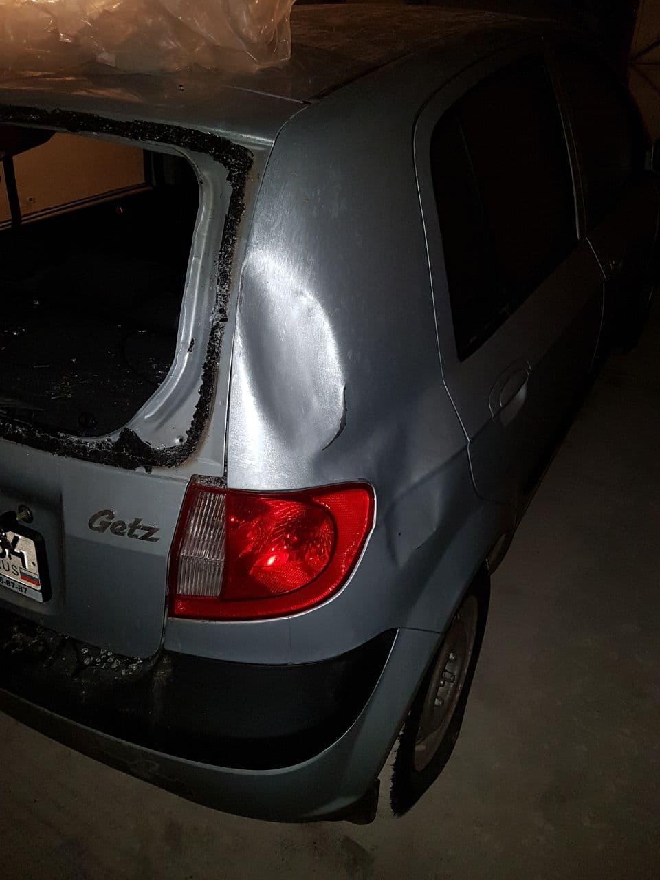 Гетц. Помяло заднее крыло, вроде без заломов. Выправить и чуть позже покрасить. А то стекло вклеивать нельзя, мешает замятие у проёма. Центральный, Ворошиловский.