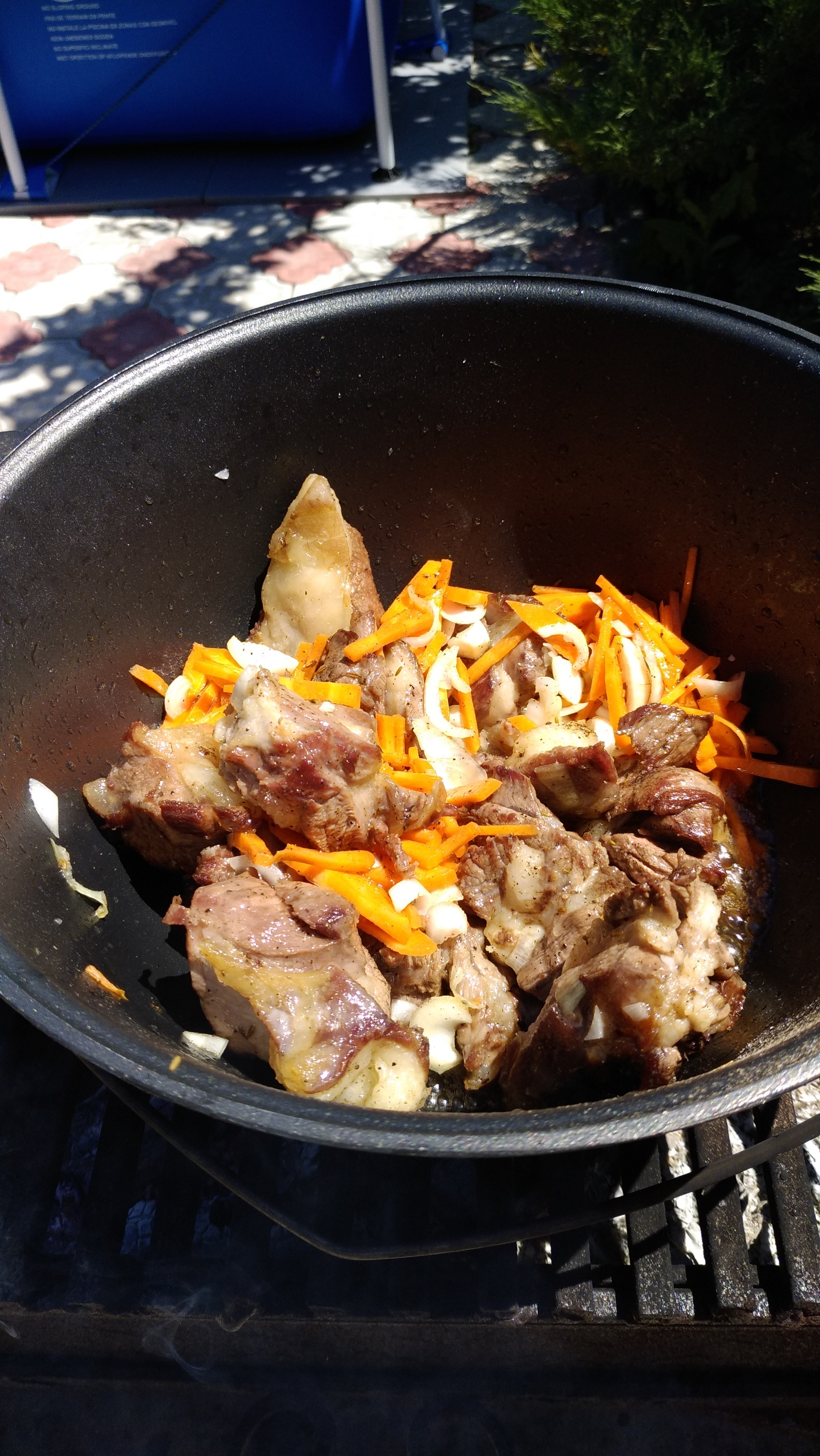 Я плов в казане на костре готовлю. Руки дойдут, хочу шурпу приготовить и блюдо «не помою название, надо гуглить» там молодой картофель целиком обжаривается, потом овощи мясо и к ним картошку и всё вместе доготавливается.