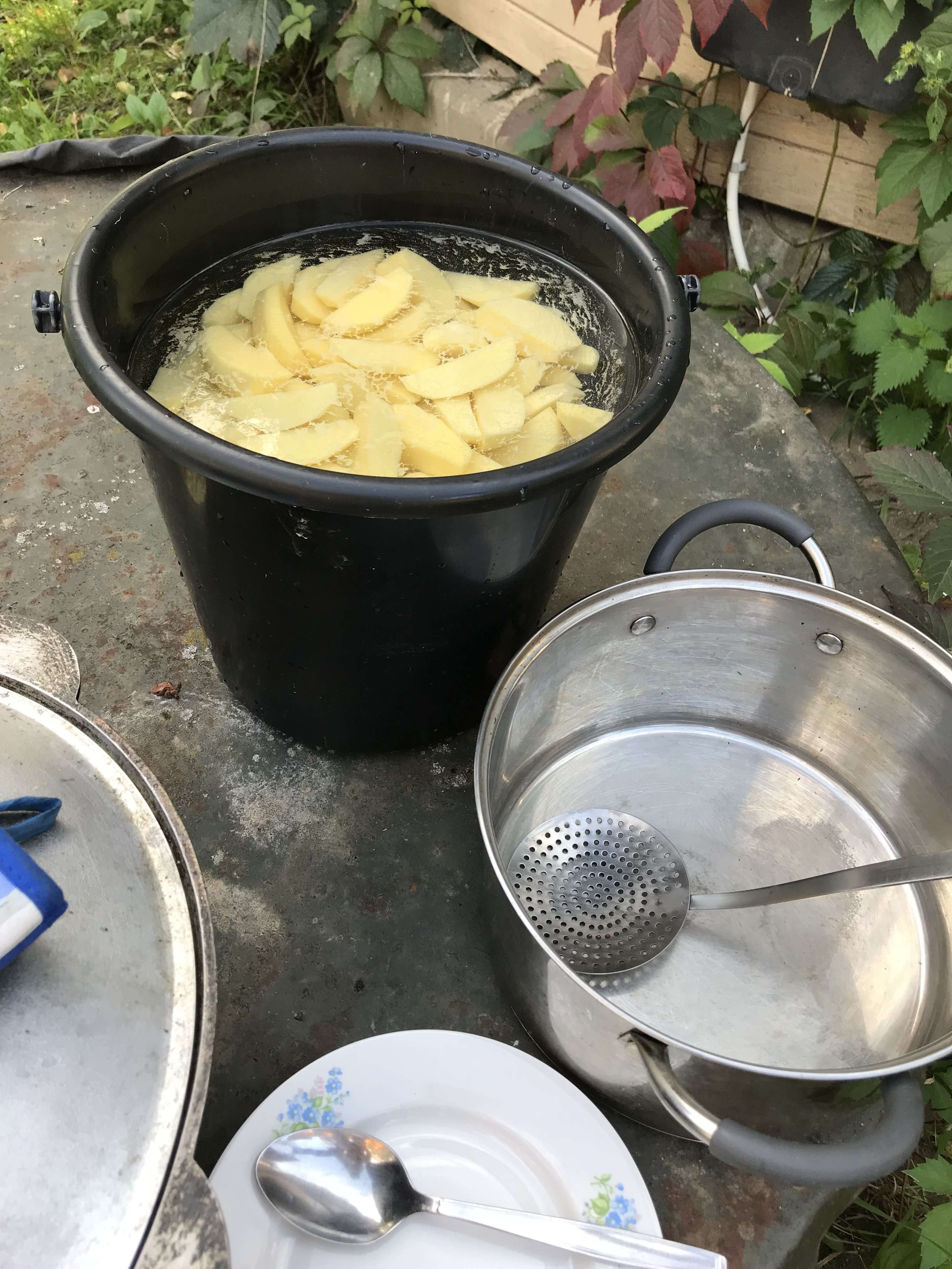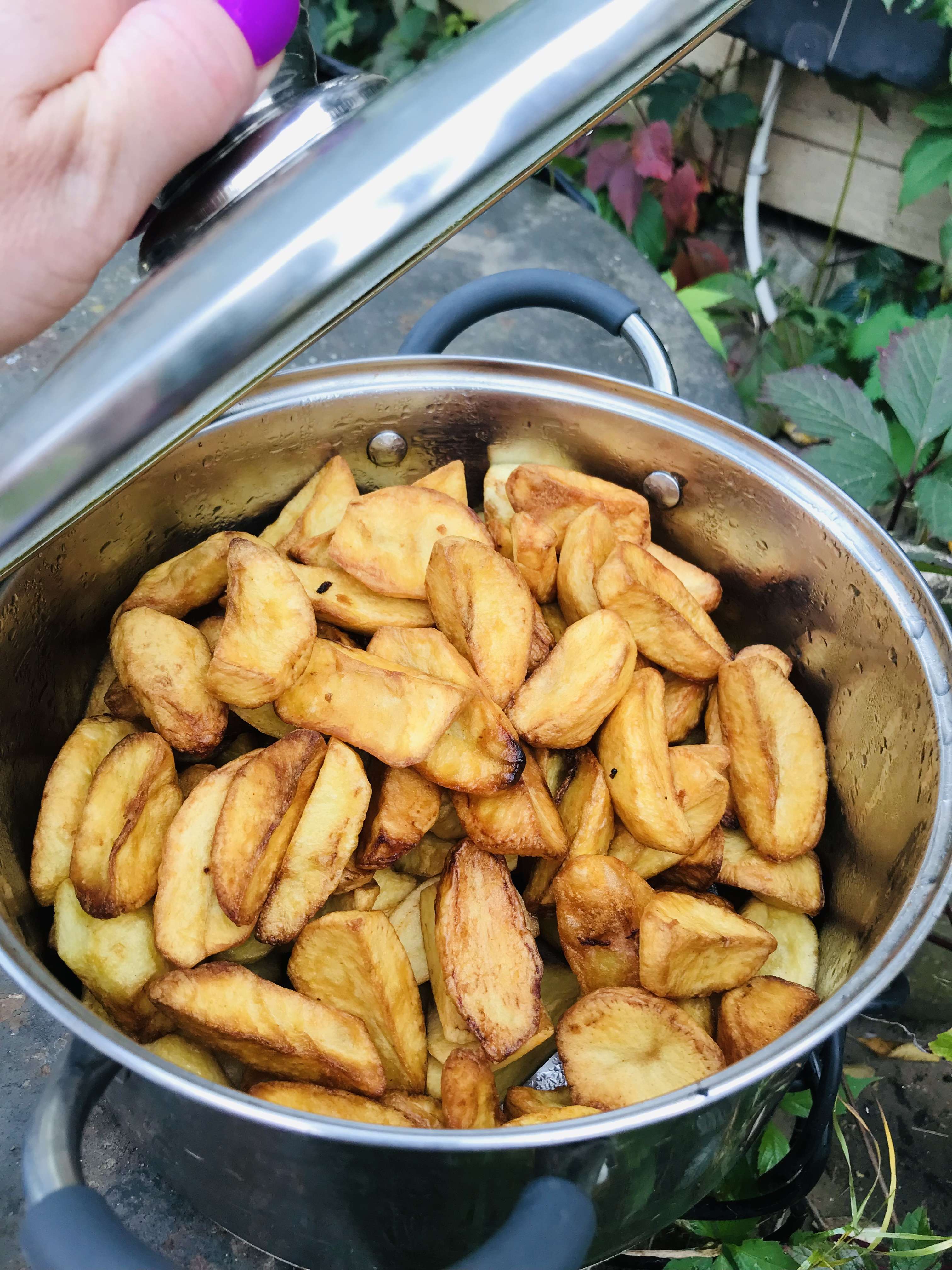 Ведро картофеля)) Сначала картофель обжарила во фритюре, в котелке это делала. Потом в казане мясо, лук с морковкой, грибы. Сверху картофель, овощи, специи и под крышку до готовности. 27.09.23