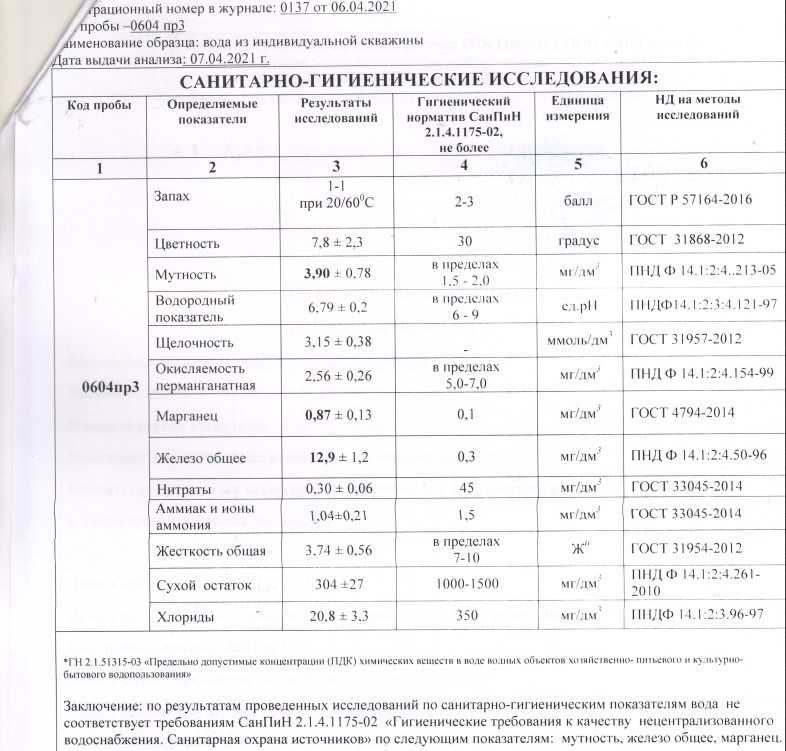 Нет, не делал. Как железо может выпасть не окрасив воду? Из скважины идёт кристальная вода, постояв становится как в правой бутылке. Пройдя фильтр остаётся чистая.