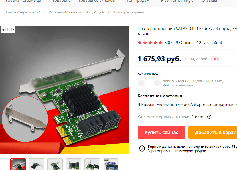 Я дал конкретную ссылку на конкретный товар. Там ДВА SATA..Ещё в марте он стоил меньше 500 рублей, а сейчас почти 1000.